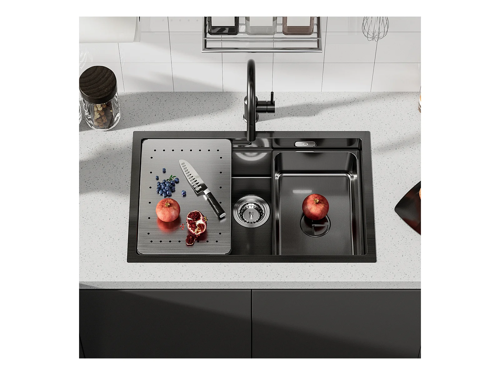 Cecipa max keukenspoelbak 1 kom 70×44×21 cm + afdruiprek + wastafel - roestvrijstalen keukenspoelbak zwart ingebouwde keukenspoelbak, EU-model