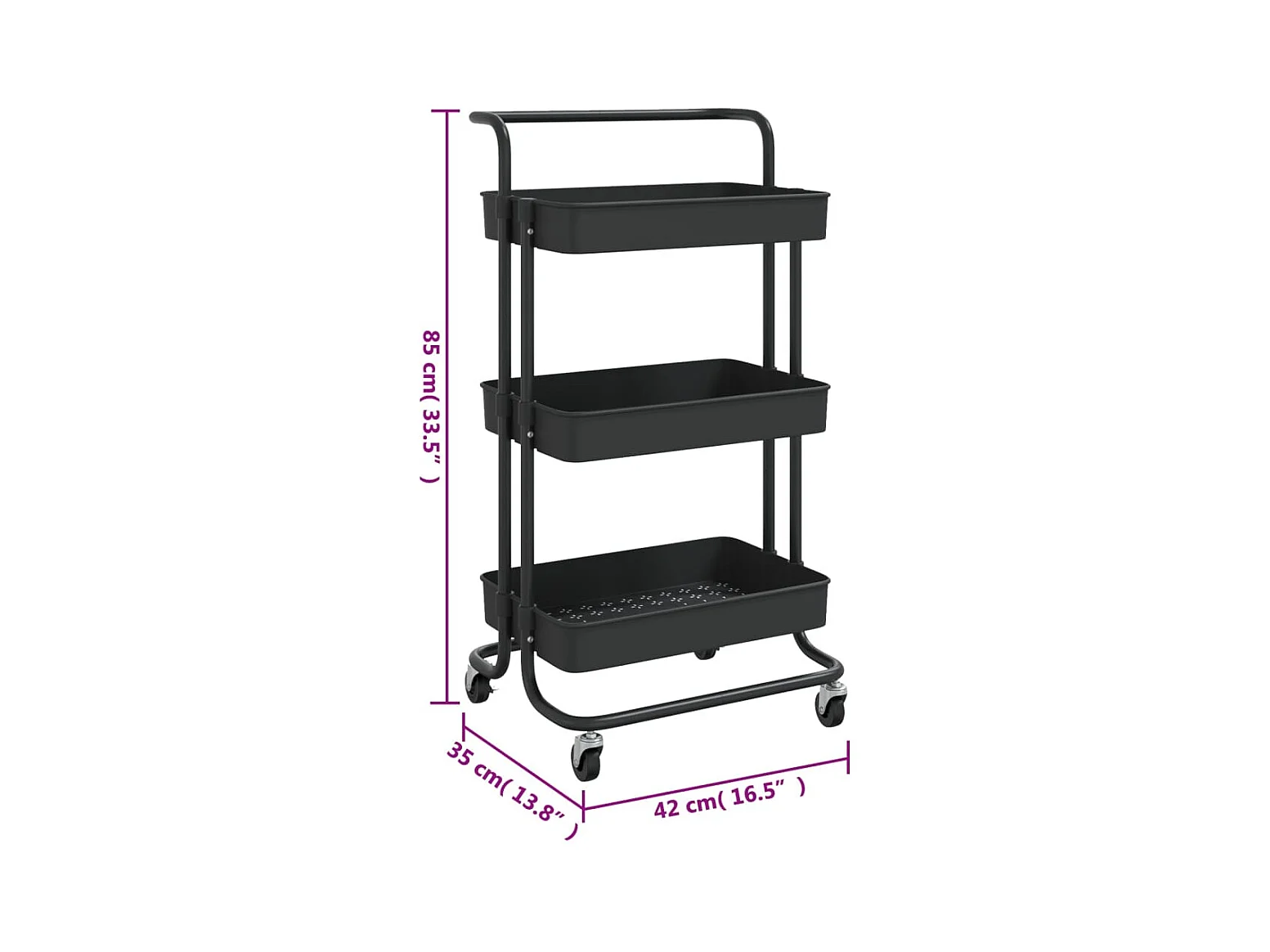 Keukentrolley 3-laags 42x35x85 cm ijzer en ABS zwart