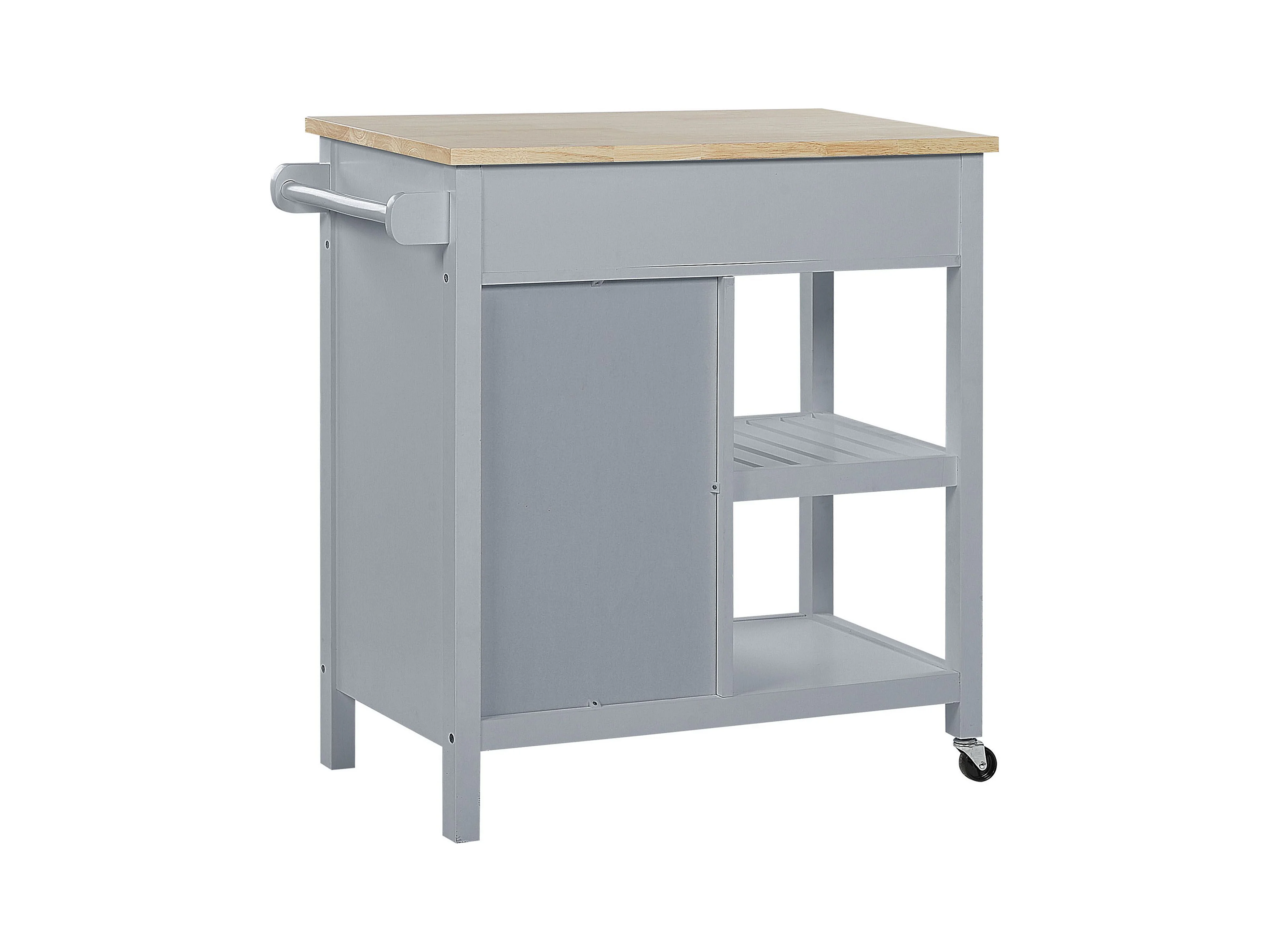Keukentrolley op wielen met 1 lade en 3 deuren, uitschuifbaar blad in licht eikenfineer, grijze behuizing