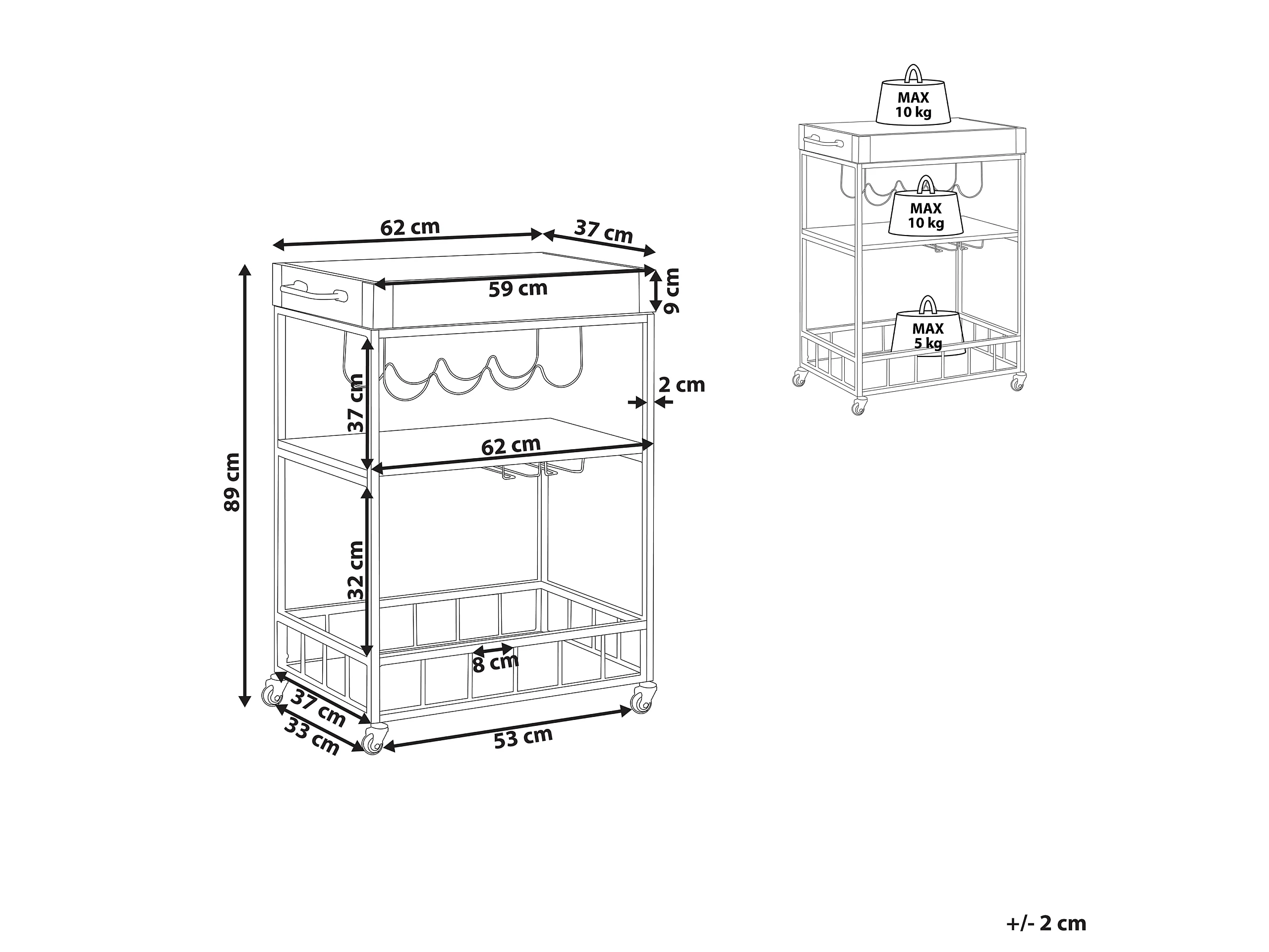 Keukentrolley HULLET Metaal Lichtbruin