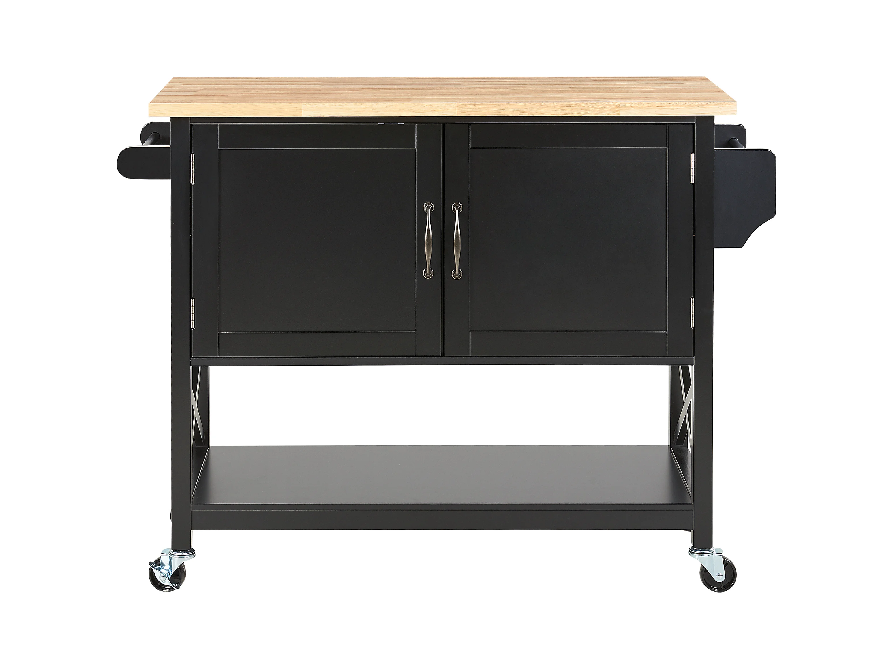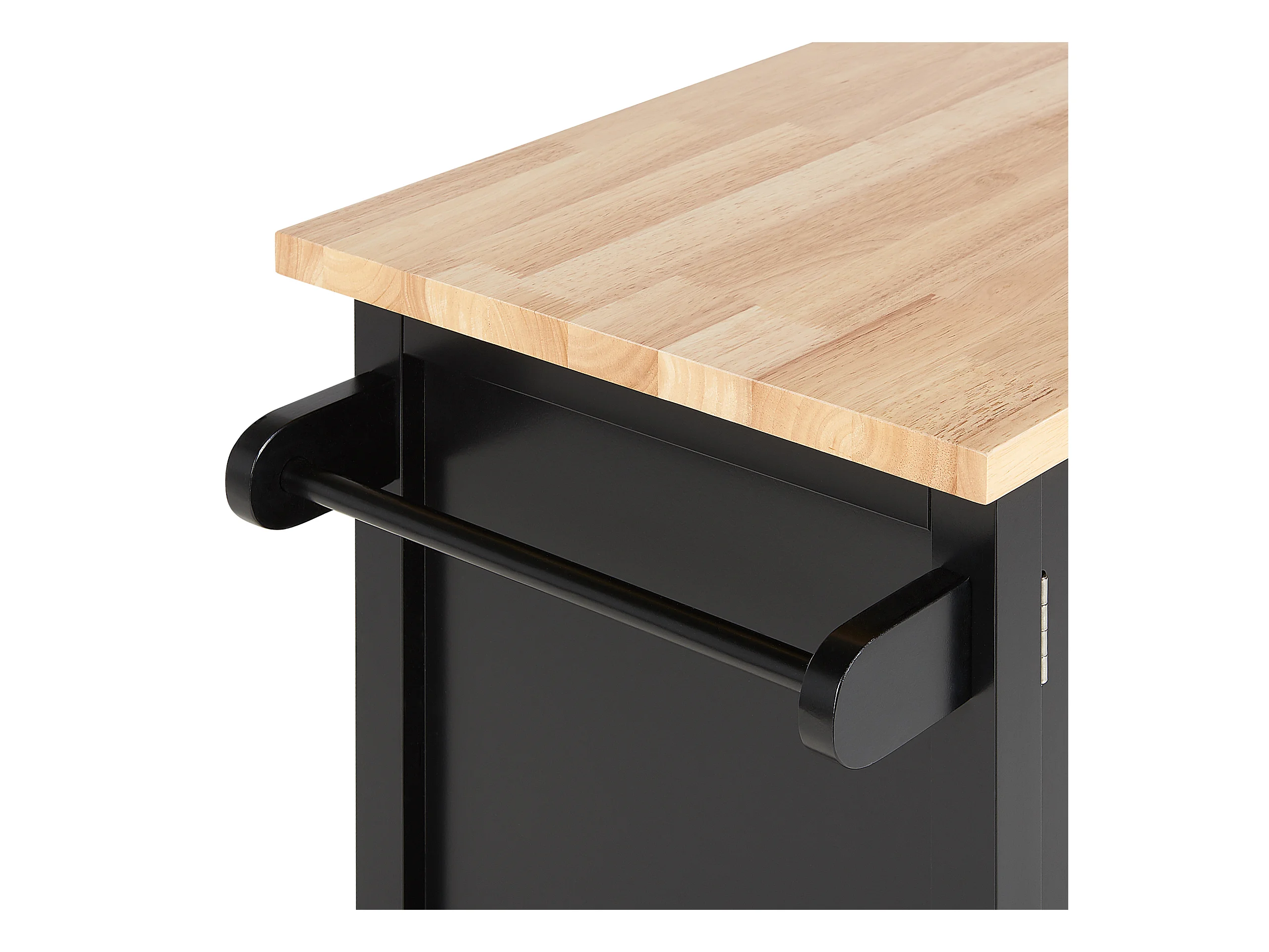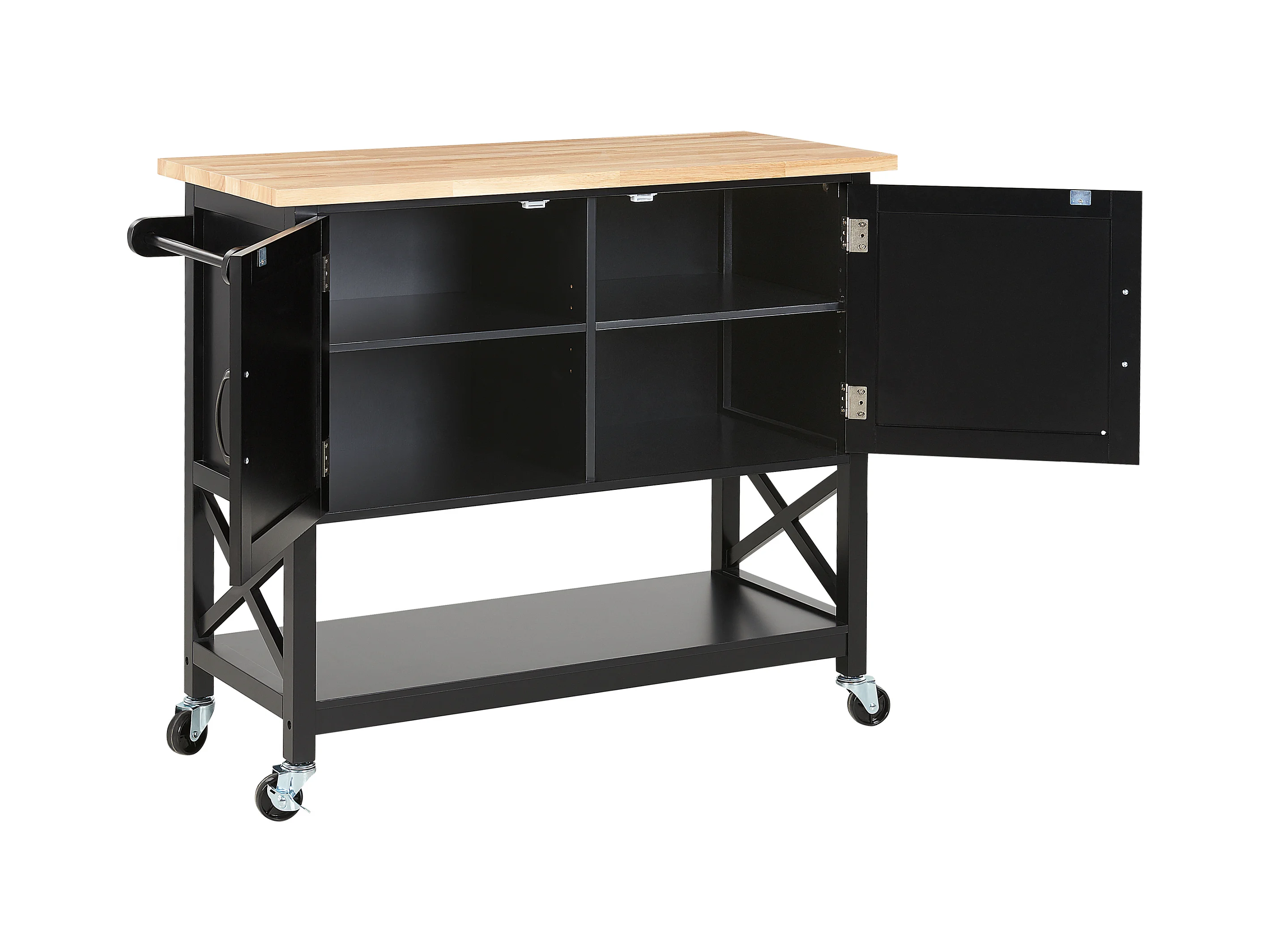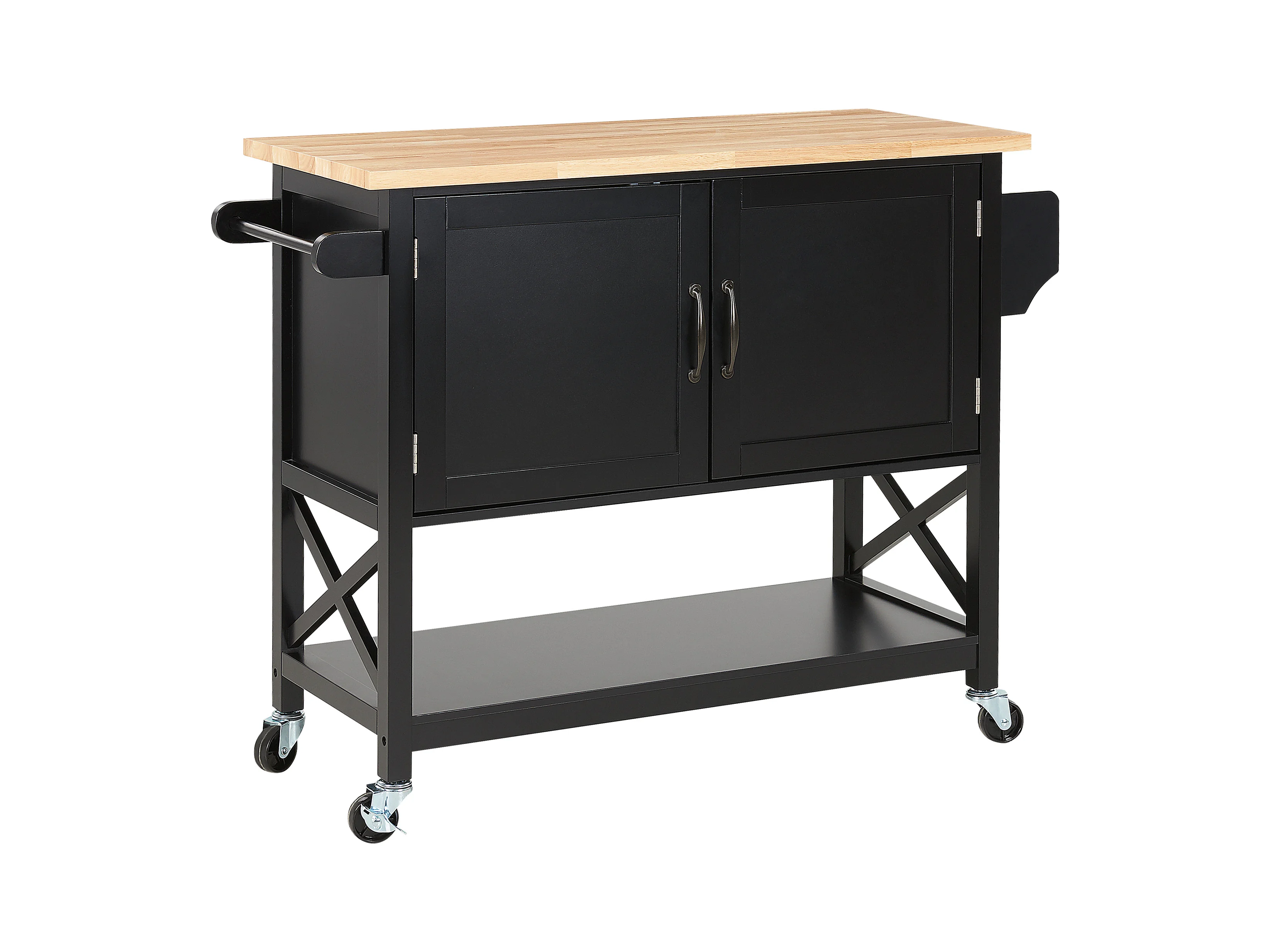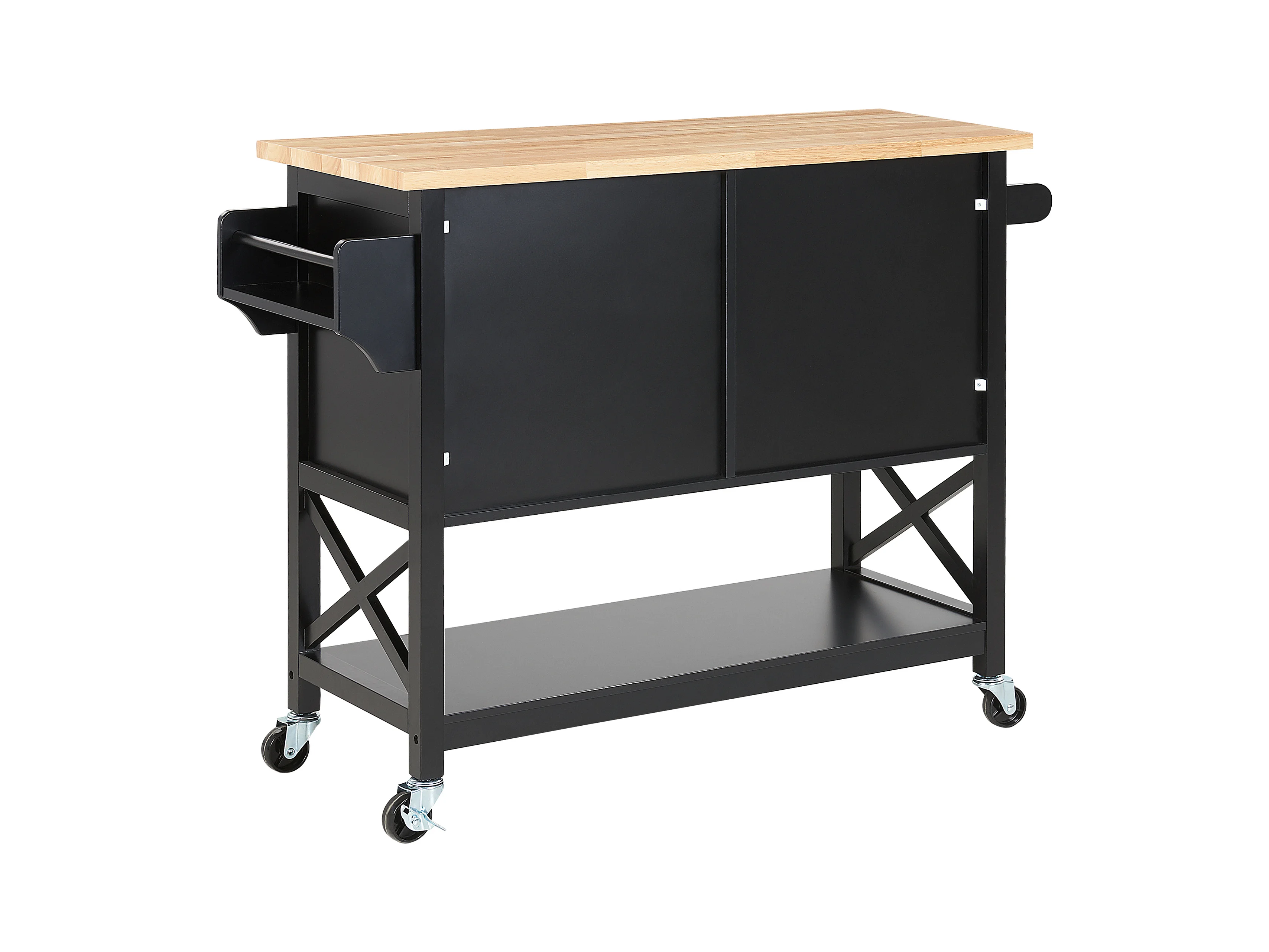 Mobiele keukentrolley, opklapbaar blad, 2 lades, wielen, zwart en naturel (L132,5 x D44(70) x H90 cm)