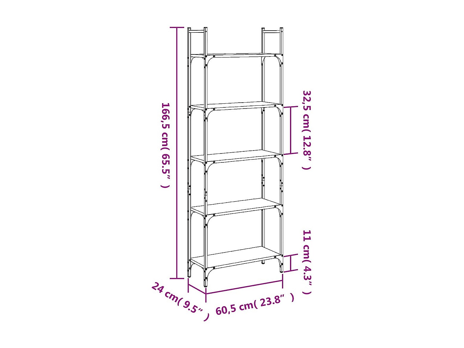 Kiki Boekenkast 5-laags 60,5x24x166,5 cm bewerkt hout zwart