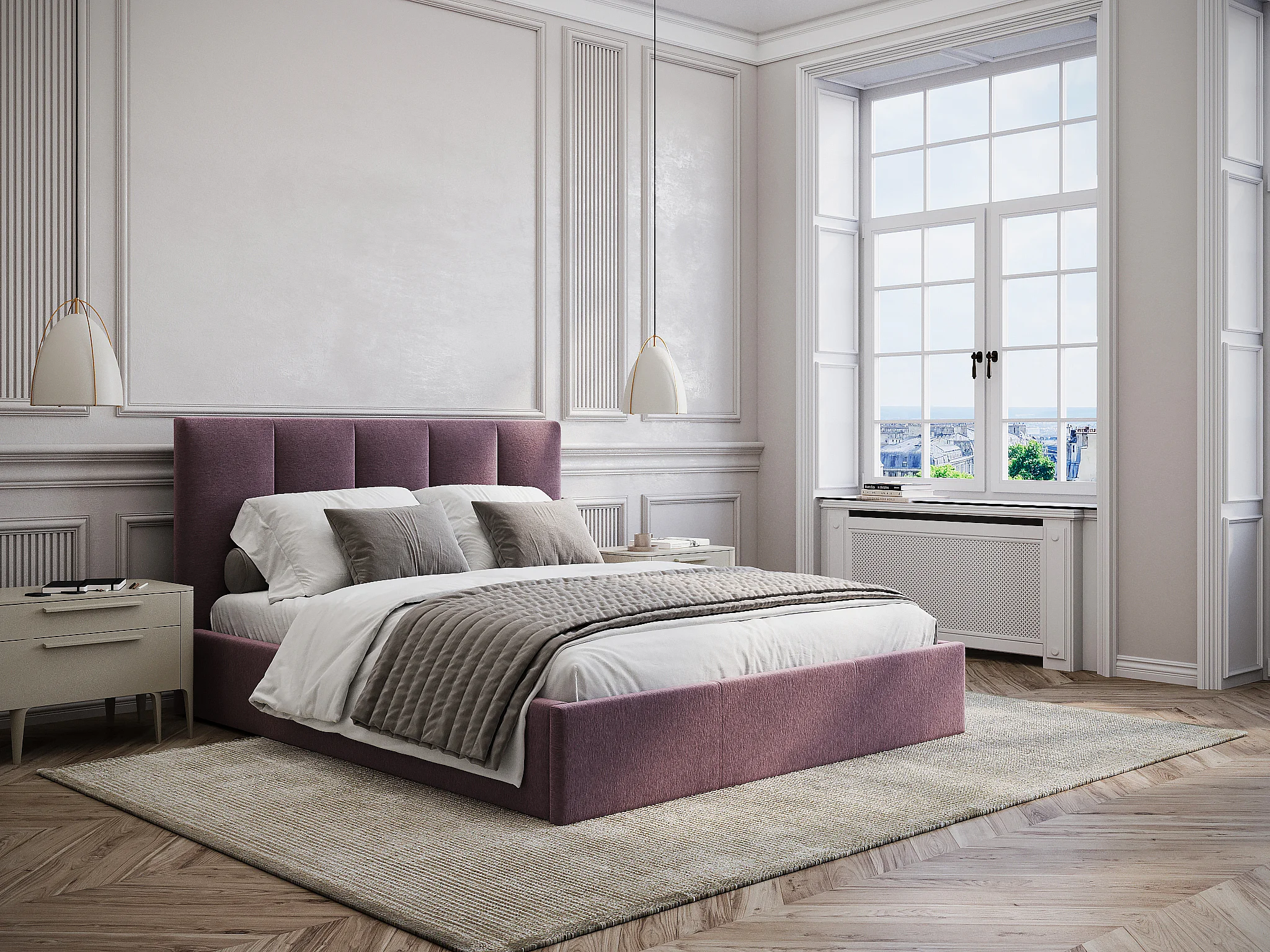 Bed met opbergruimte 180 x 200 cm met hoofdbord met verticale stiksels - Stof - Bordeaux - KILACLO