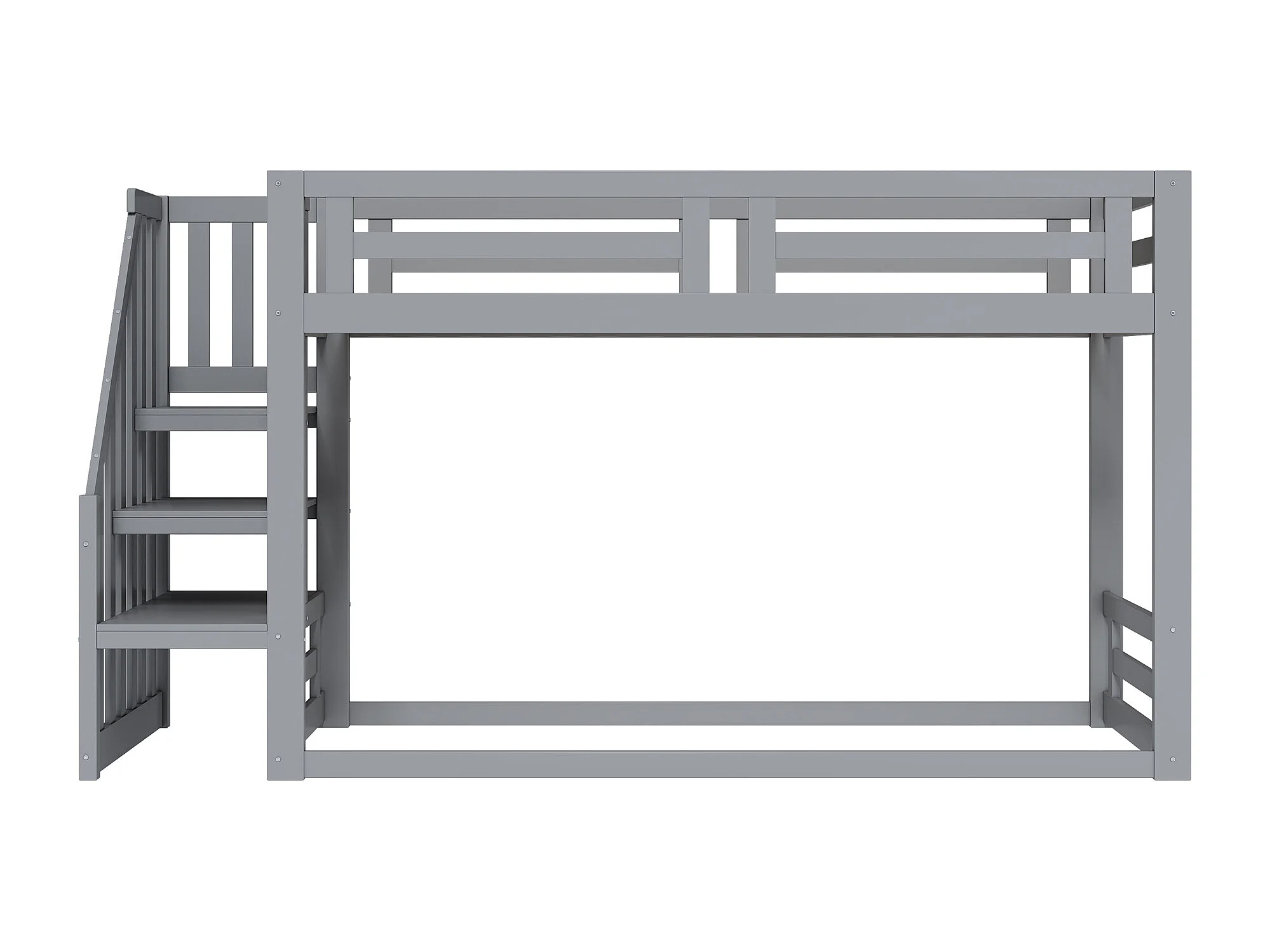 Kinder Stapelbed 90x200cm - Huisbed Multifunctioneel Met Opbergrek en Veiligheidsrail 29cm - Massief Hout - Grijs - Zonder matras