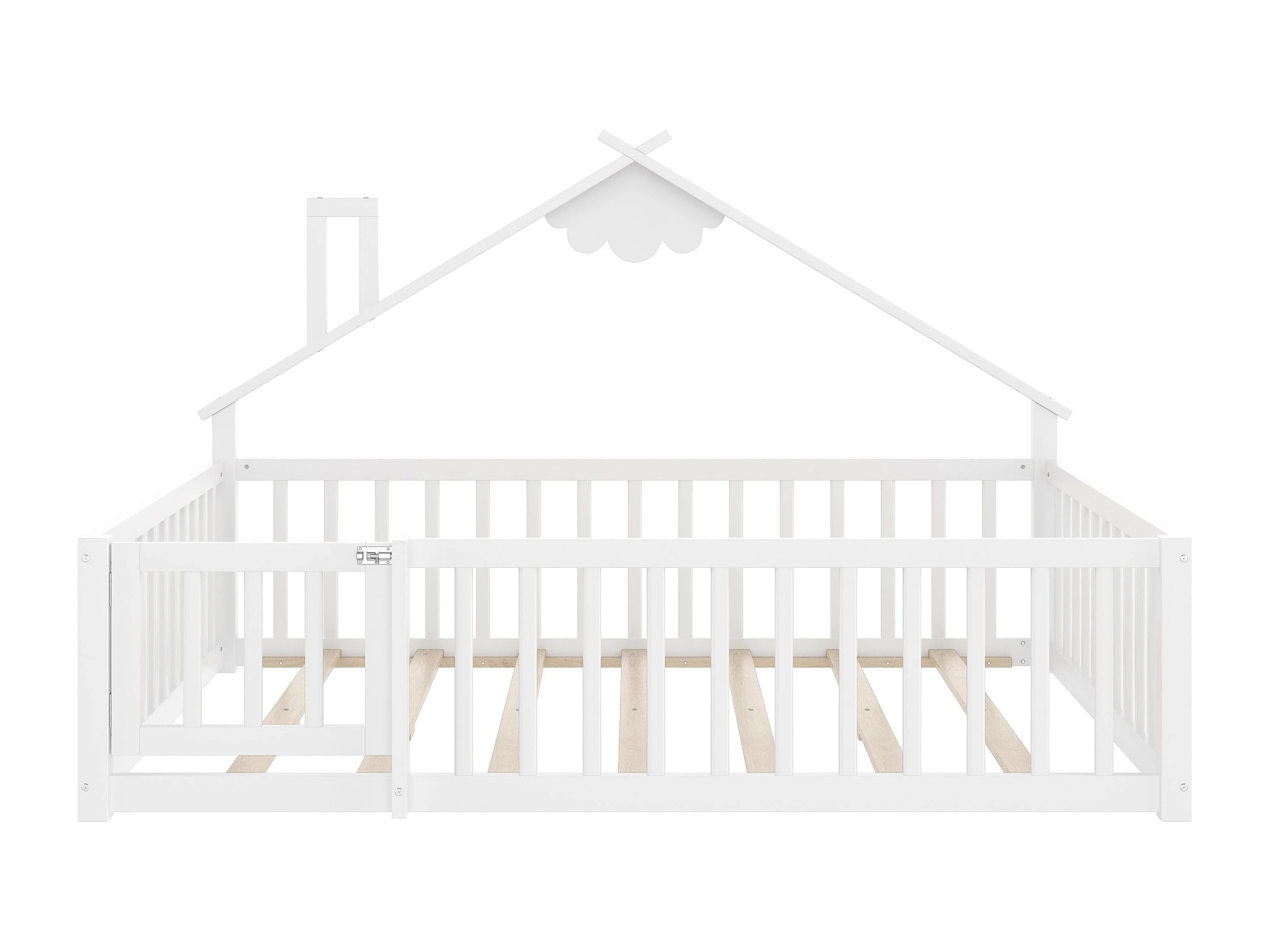 Kinderbed 140x190 cm - Tweepersoonsbed met veiligheidshekjes - wit grenen - zonder matras