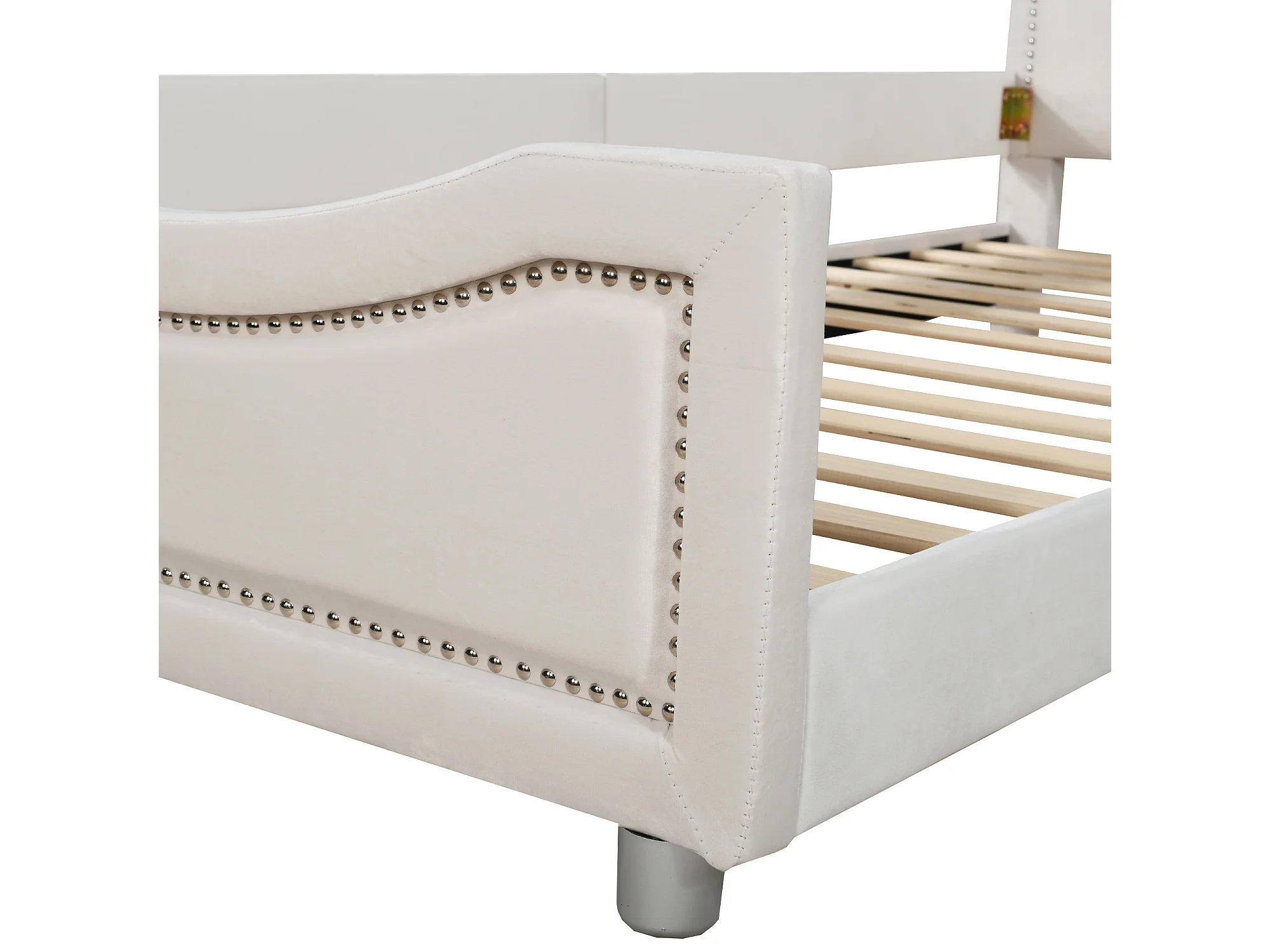 Kinderbed 211x94,5x89,5 cm met rugleuning en armleuningen, lattenbodem in wit voor kinderen en tieners