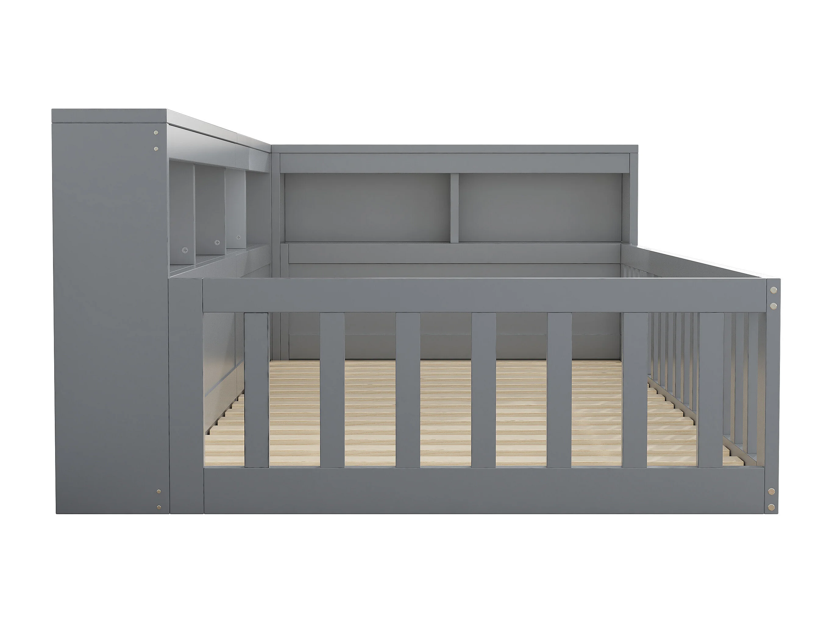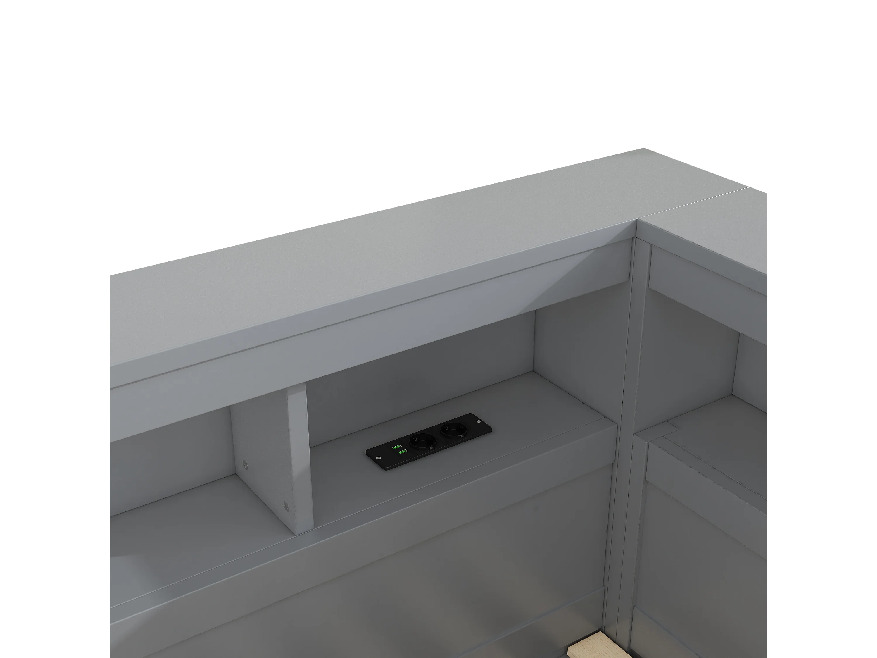 Kinderbed 90x200 cm - Eenpersoonsbed met USB-poort en stopcontacten, opbergplank - grijs - zonder matras