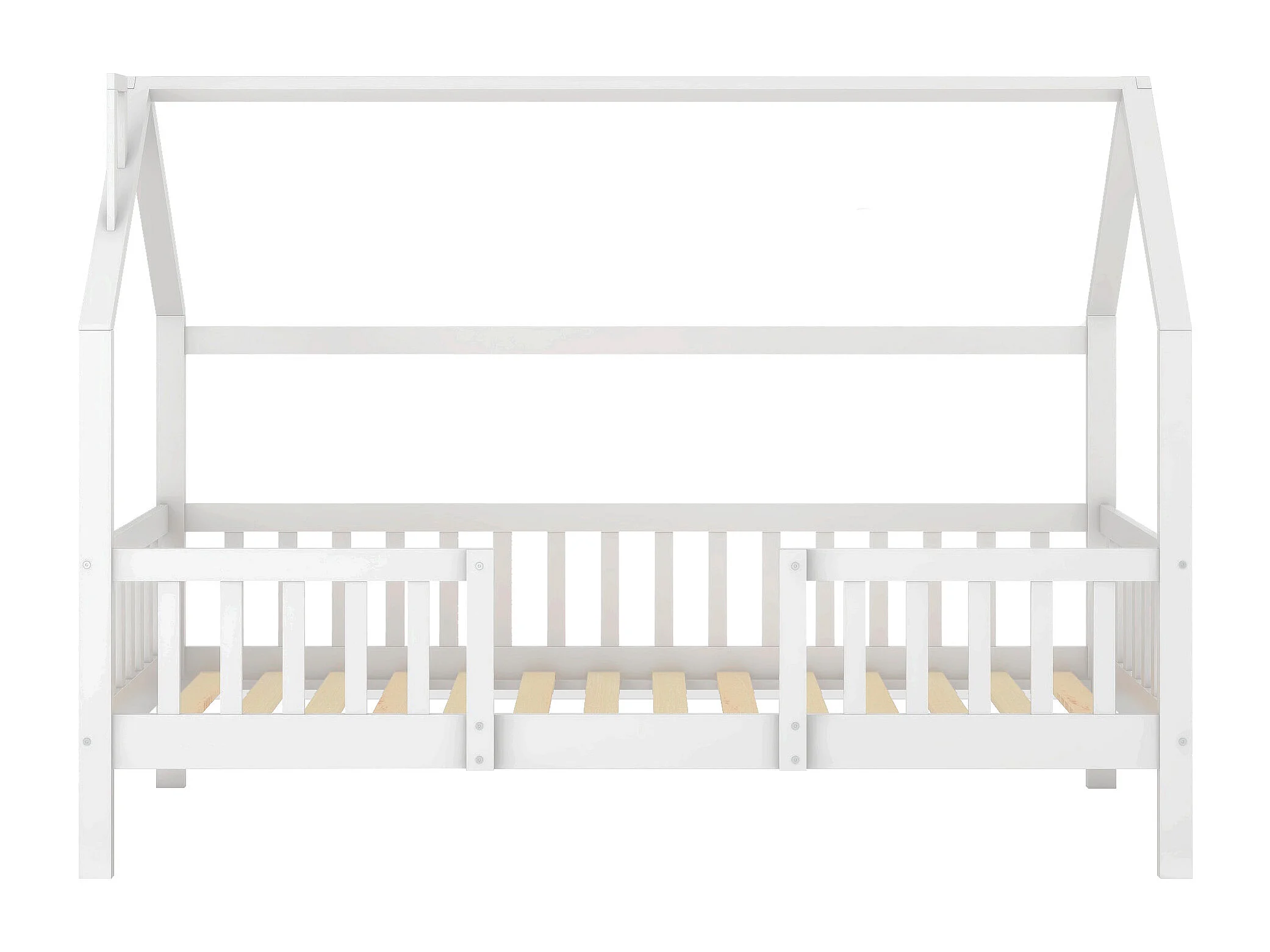 Kinderbed 90x200 cm met lattenbodem - jeugdbed met valbeveiliging - hout - wit (zonder matras)