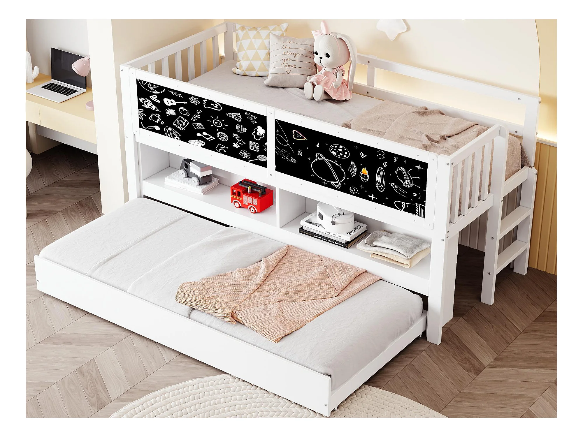 Kinderbed 90x200 cm - met opbergbed - met uitschuifbaar bed - met tekenbord - Wit (matras niet inbegrepen)
