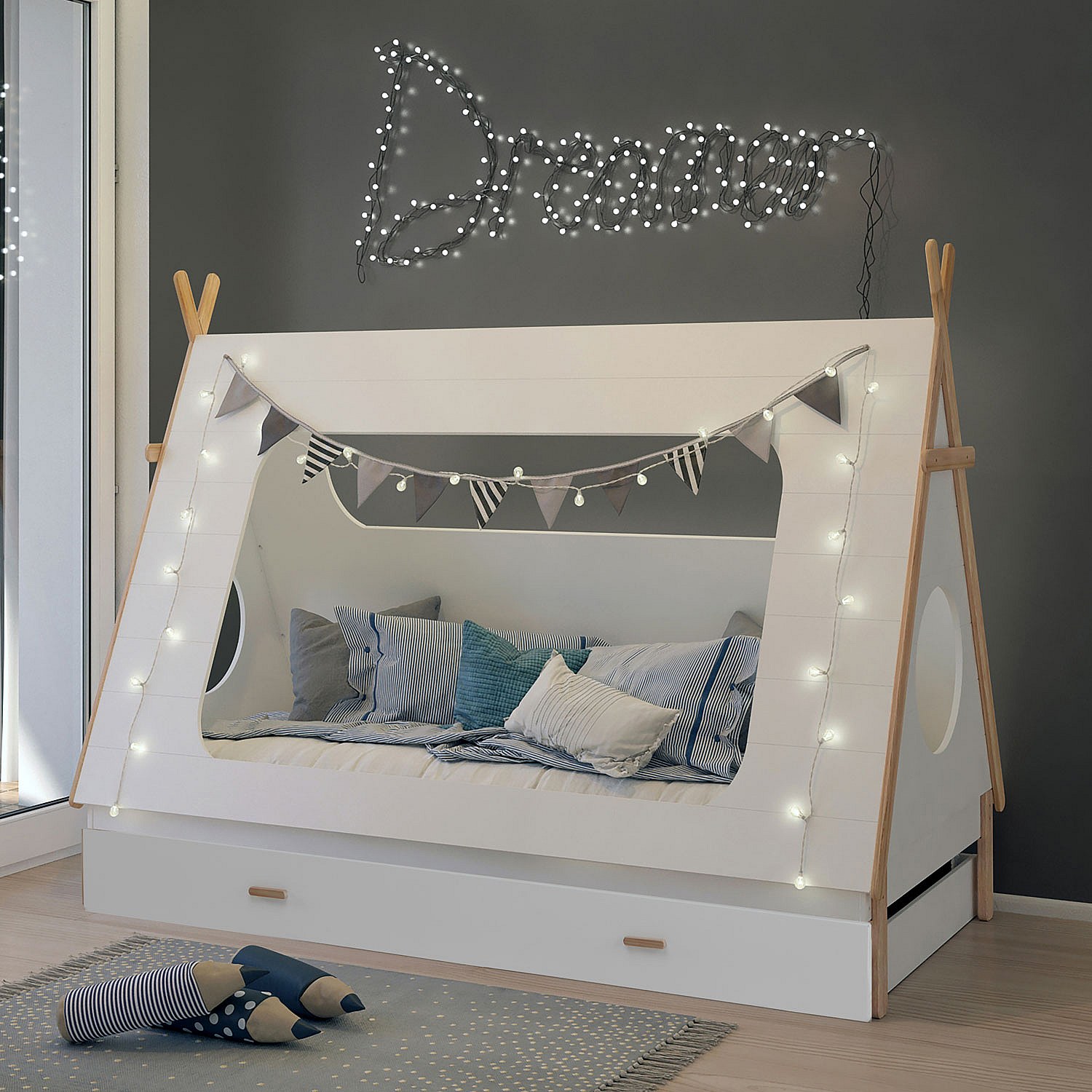 Kinderbed 90x200 cm wit tipi huis bed van hout