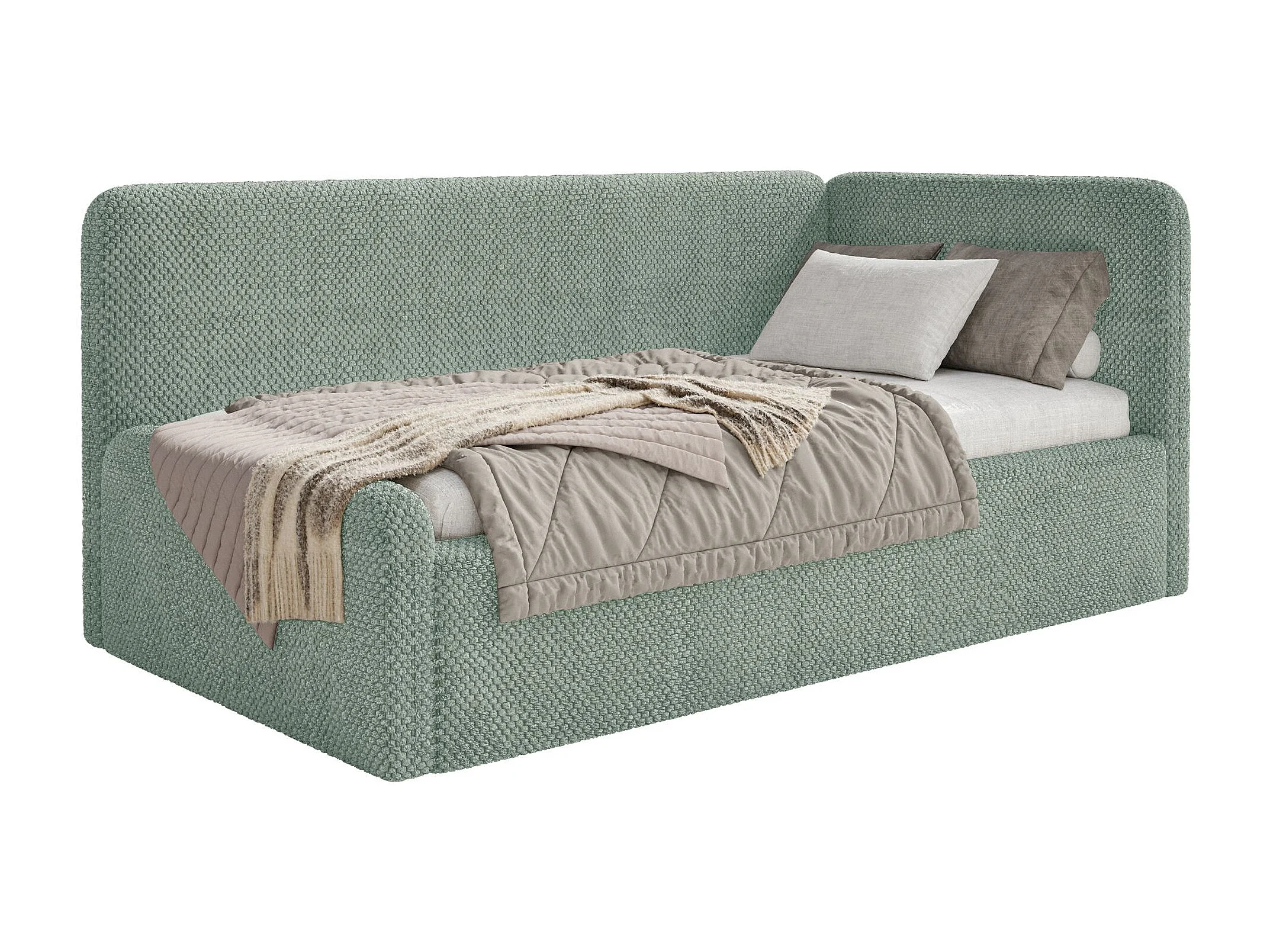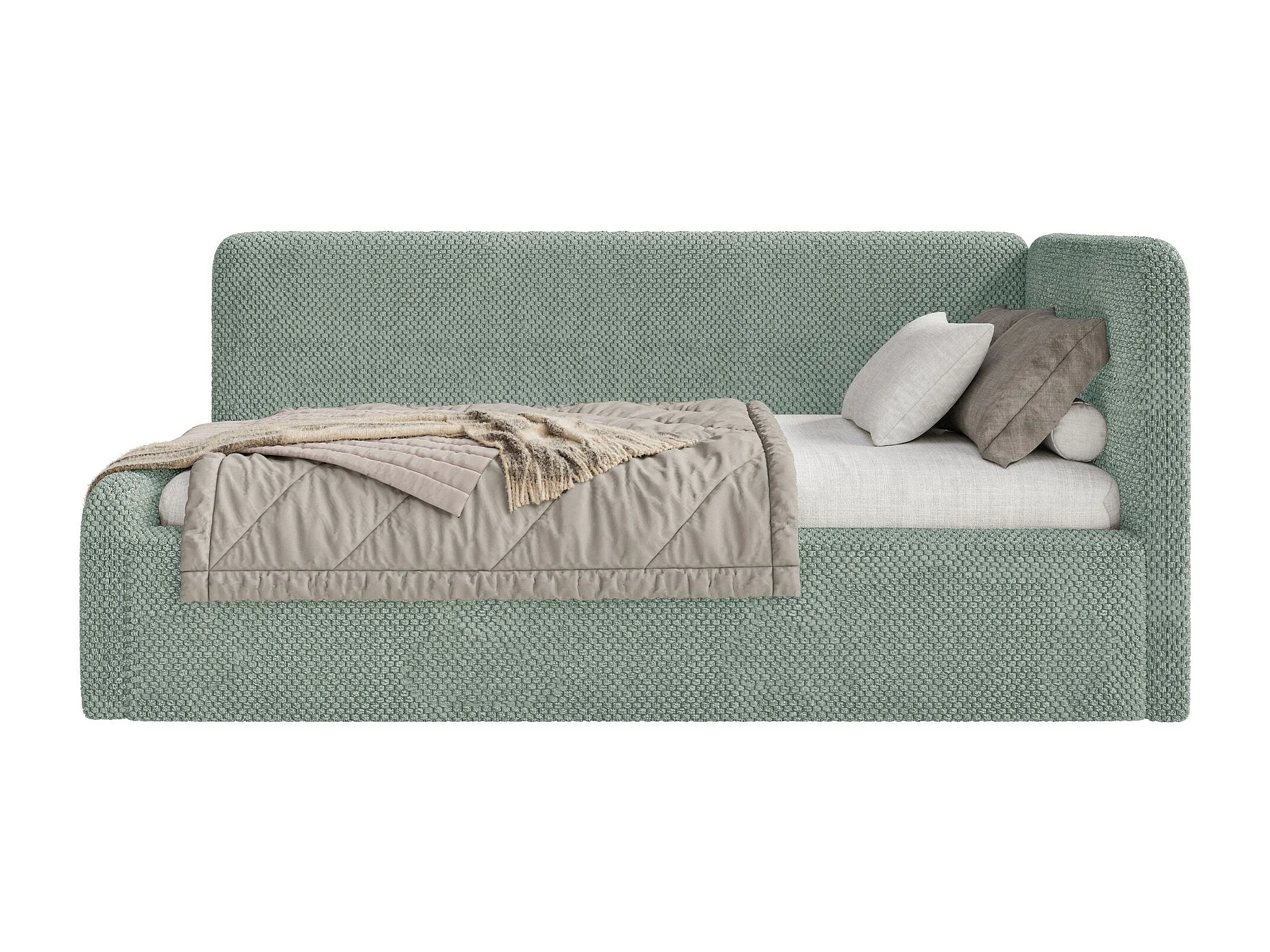 Kinderbed 90x200 met uitvalbeveiliging en hoofdbord rechts – velours – saliegroen – FANKO