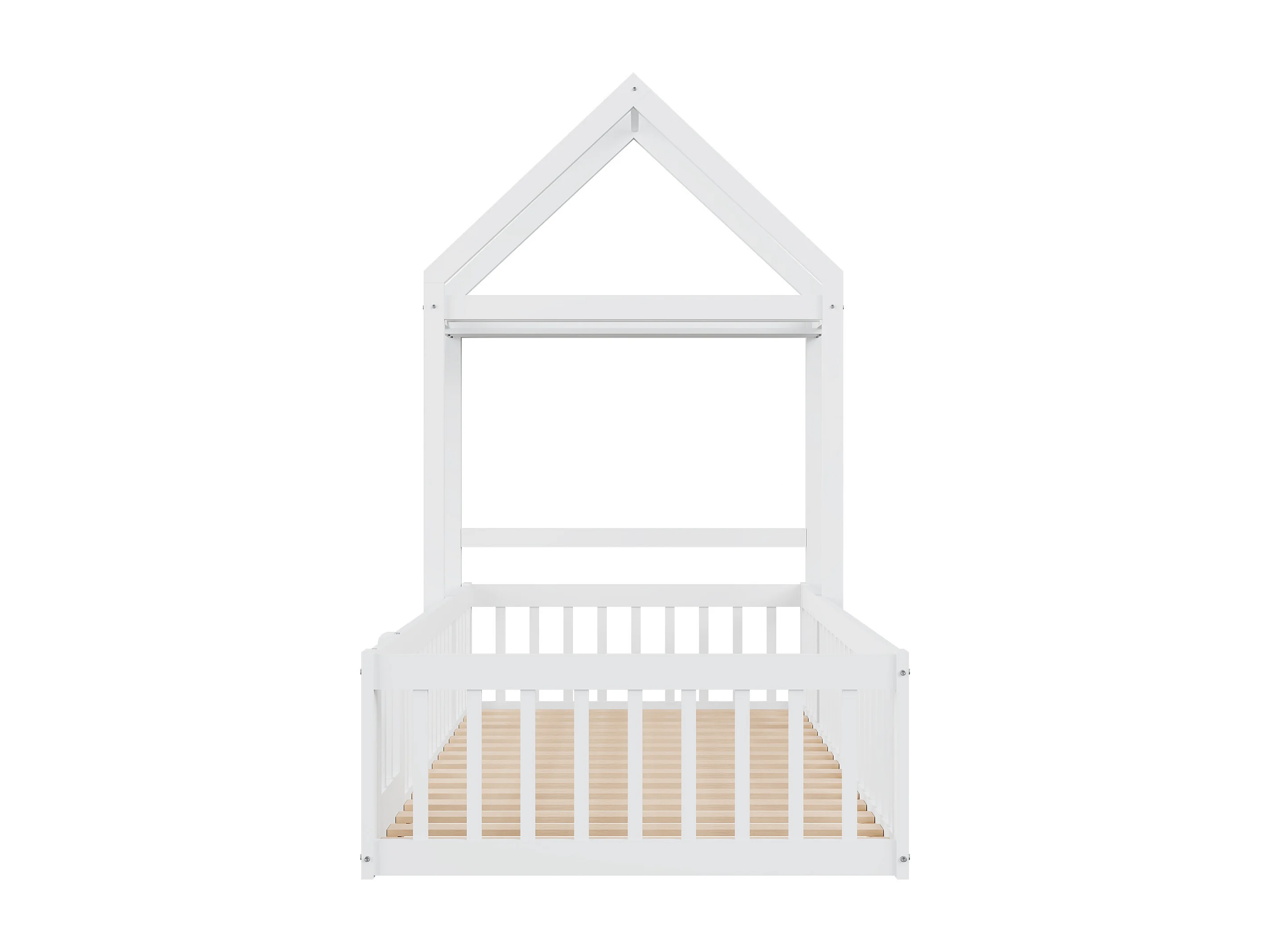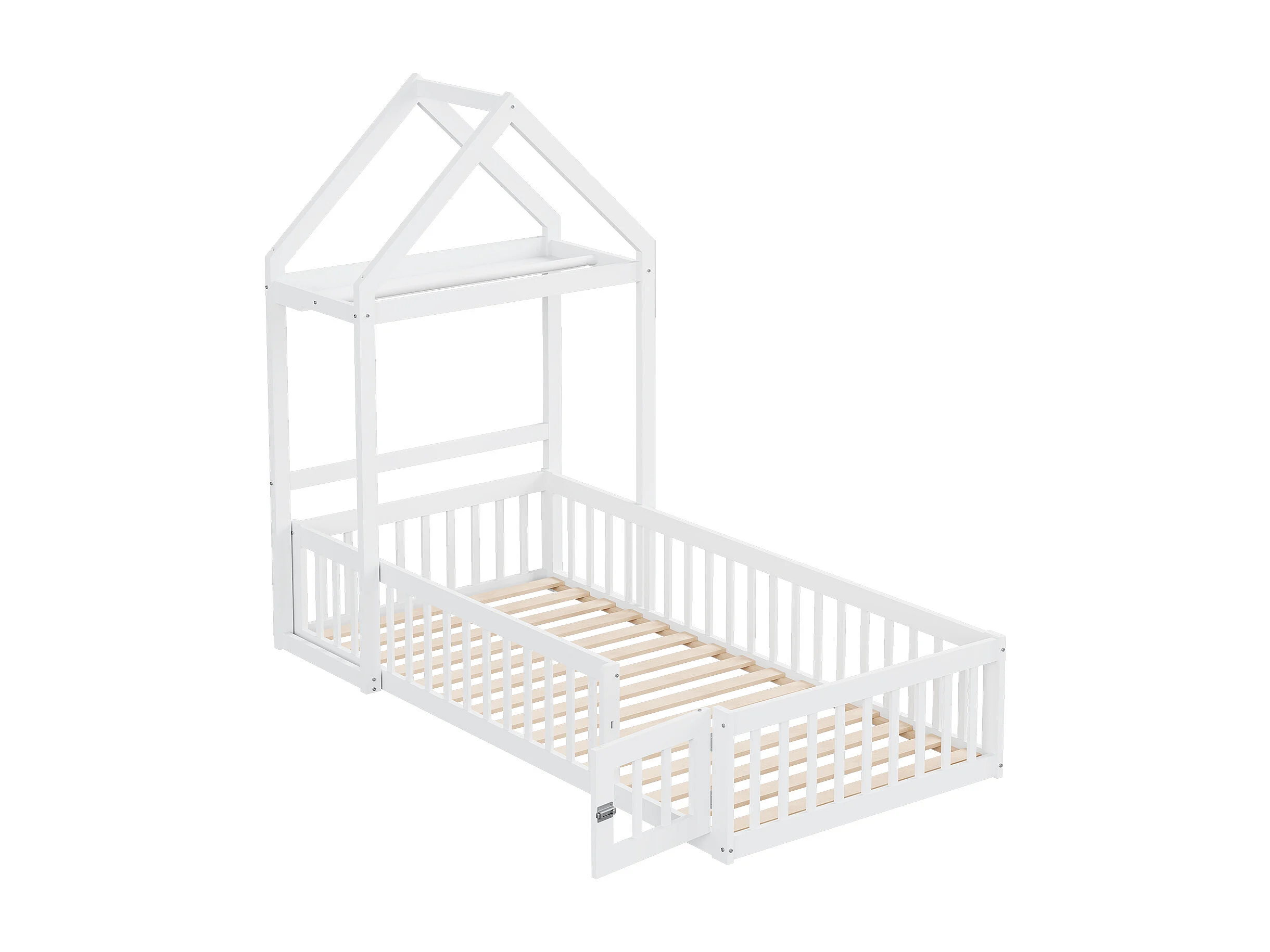 Kinderbed 90x200cm met opbergruimte en uitvalbeveiliging, lattenbodem, wit