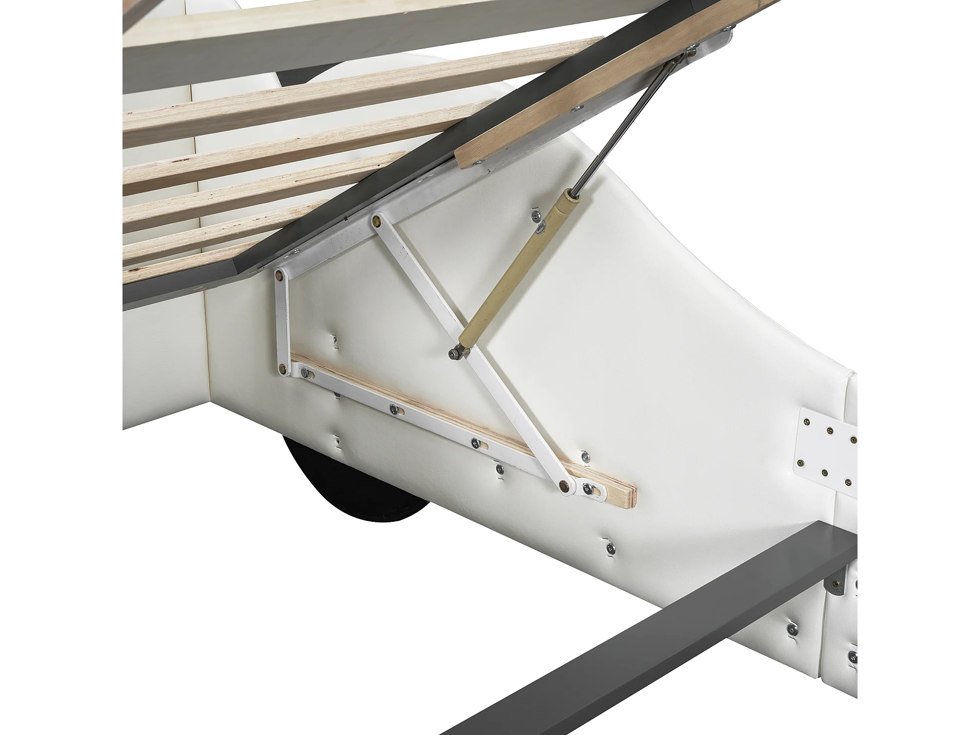 Kinderbed met opbergruimte - 90 x 200 cm - hydraulische opberging - met LED's + verstelbaar hoofdeinde - PU - wit