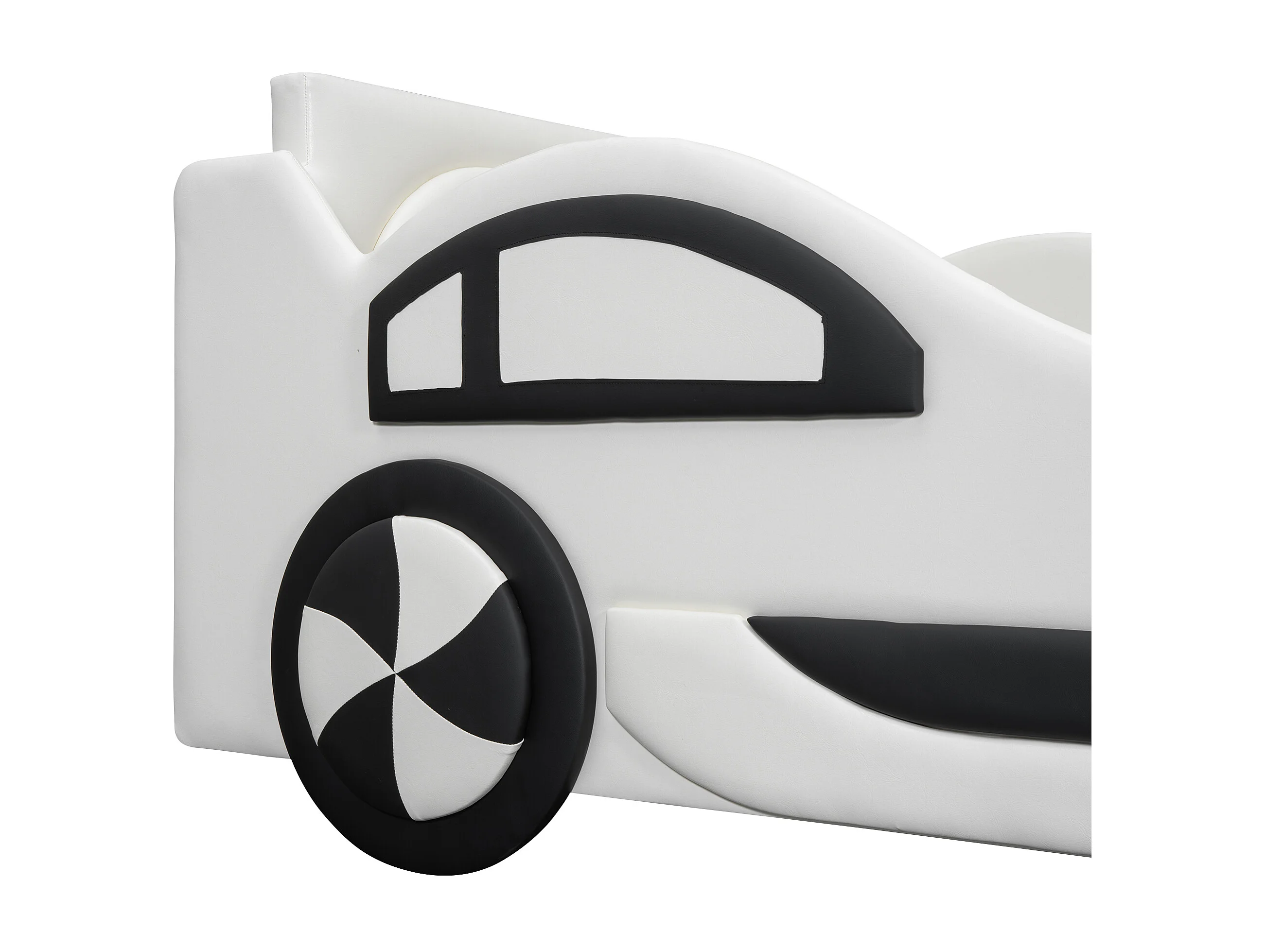 Kinderbed met opbergruimte 90x200 cm met bodem - autobedmodel - kunstleer - wit (zonder matras)