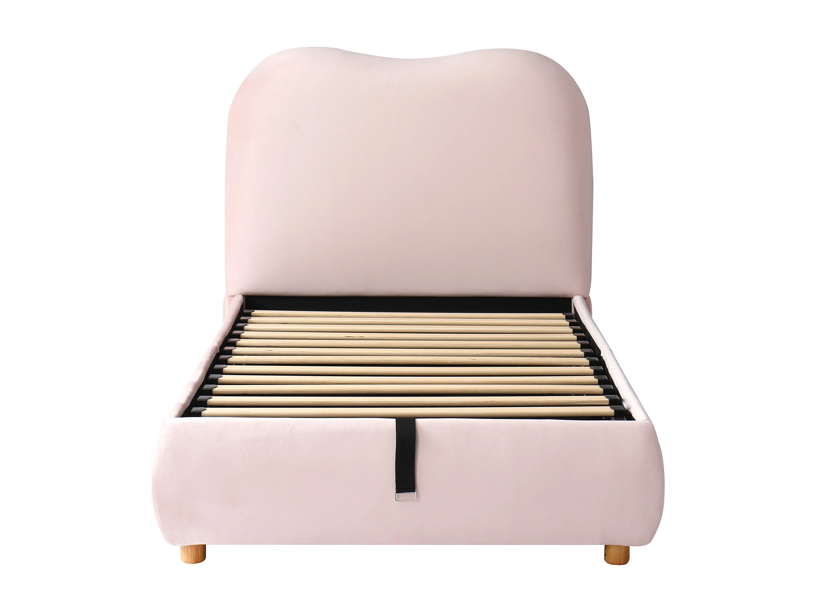 Kinderbed met opbergruimte 90x200 cm - met gestoffeerd hoofdeinde - Fluweel bekleding - Roze (matras niet inbegrepen)