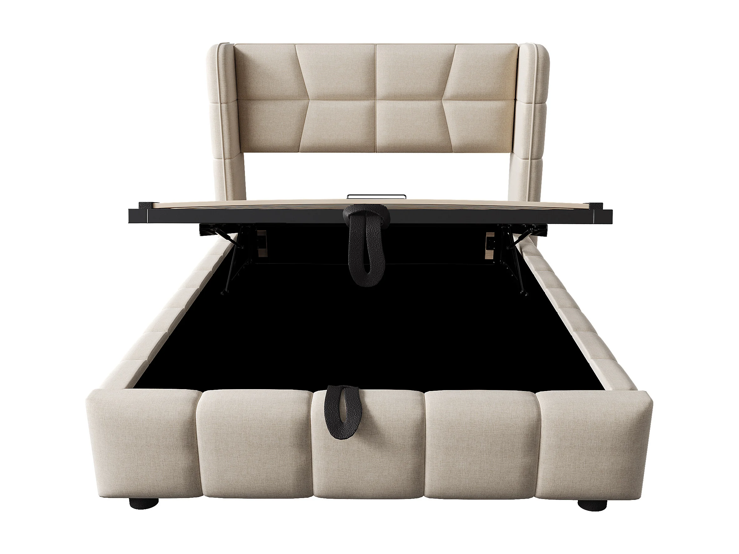 Kinderbed met opbergruimte, 90x200 cm, met lattenbodem - Beige linnen stof