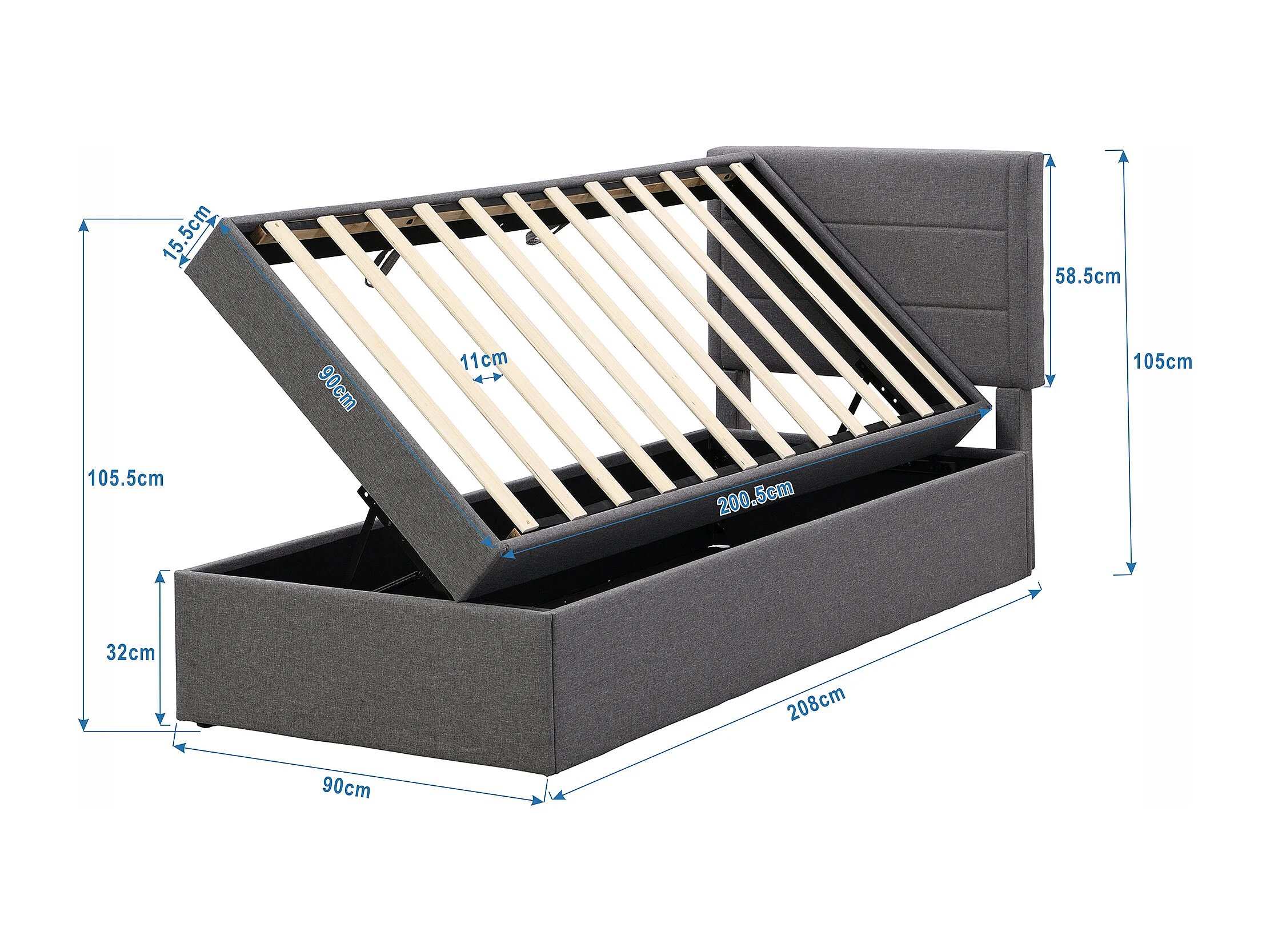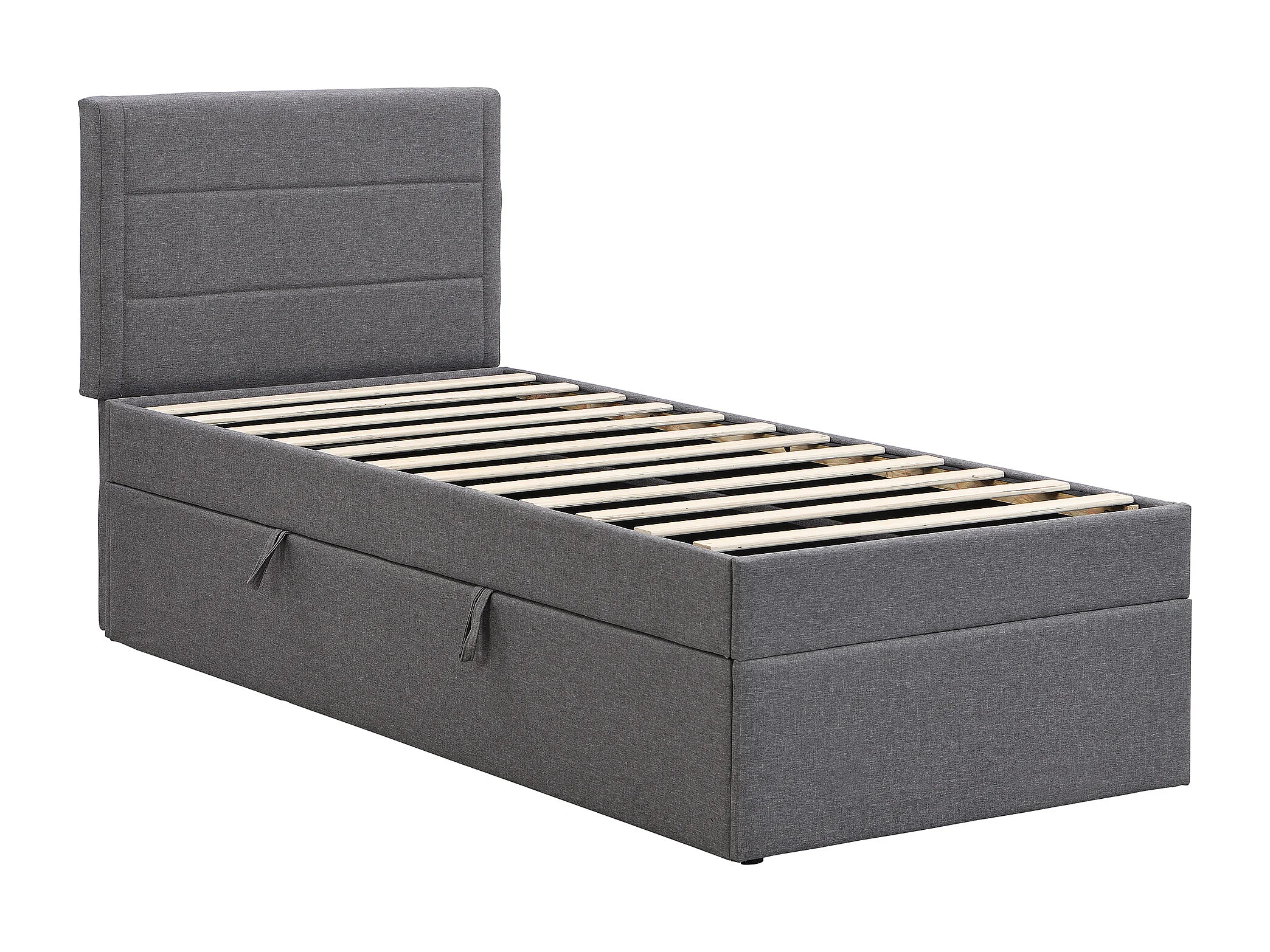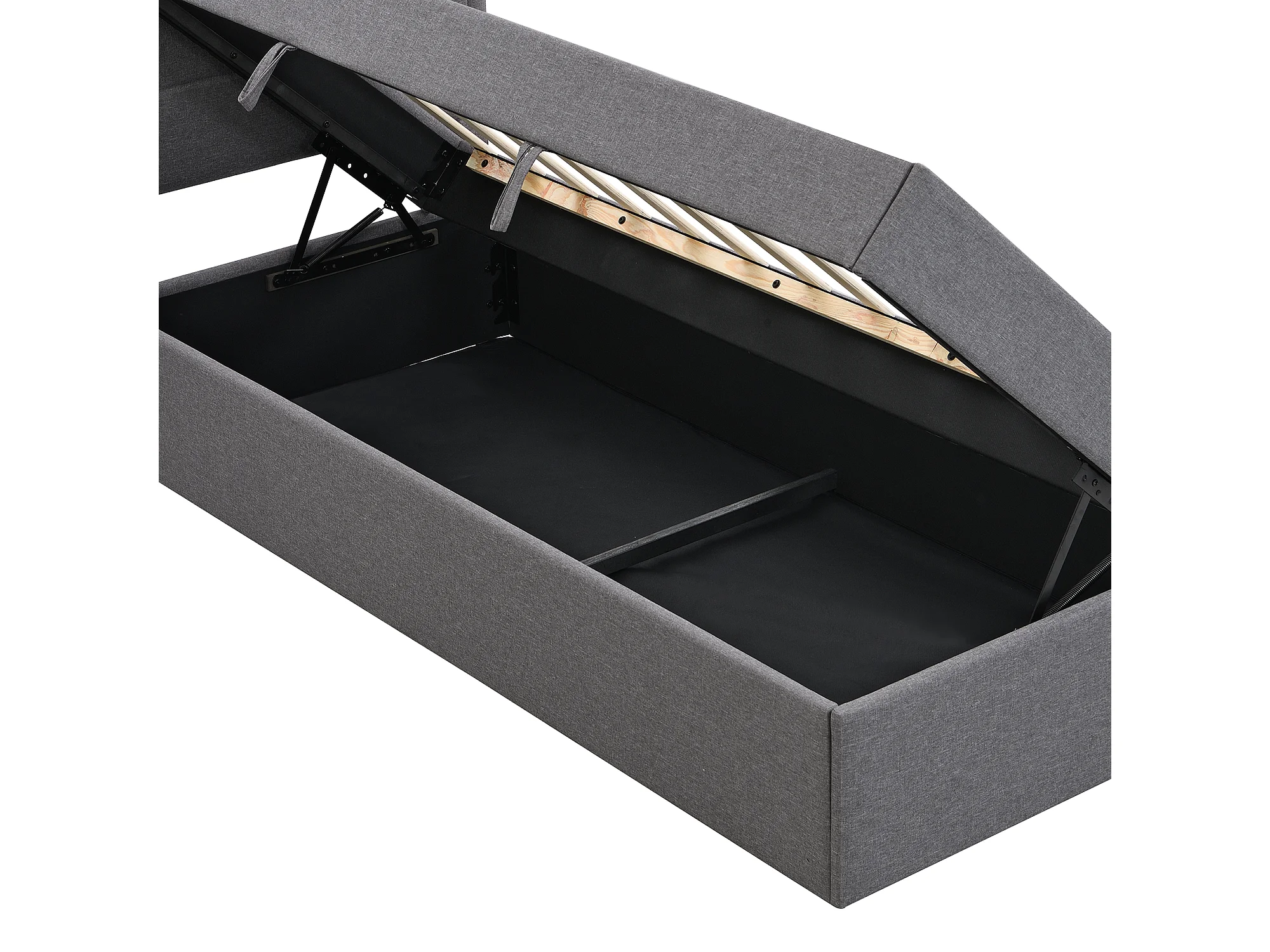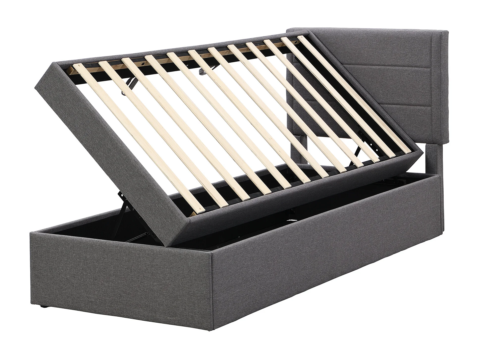 Kinderbed met opbergruimte 90x200 cm met lattenbodem - gestoffeerd hoofdbord - linnen - grijs (zonder matras)