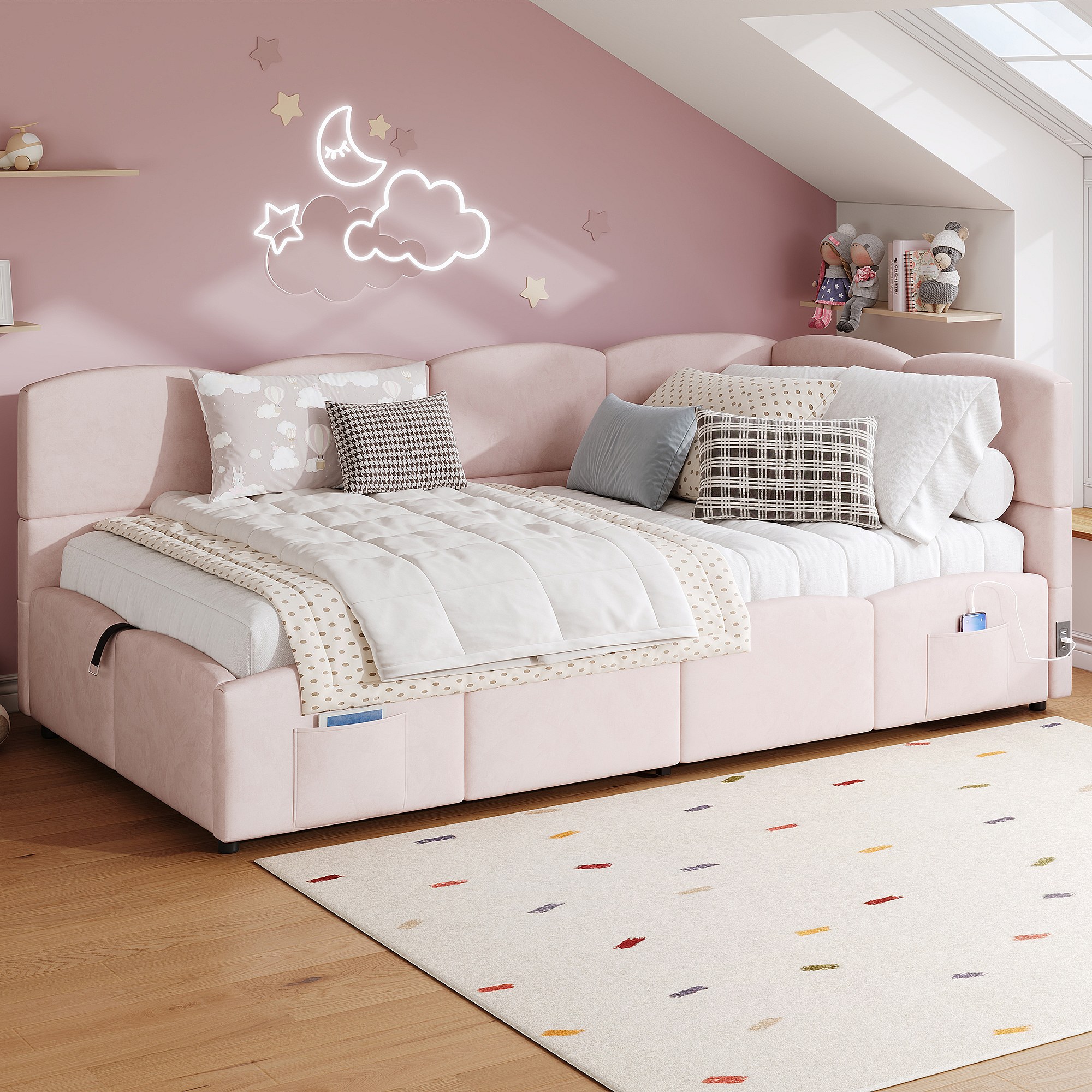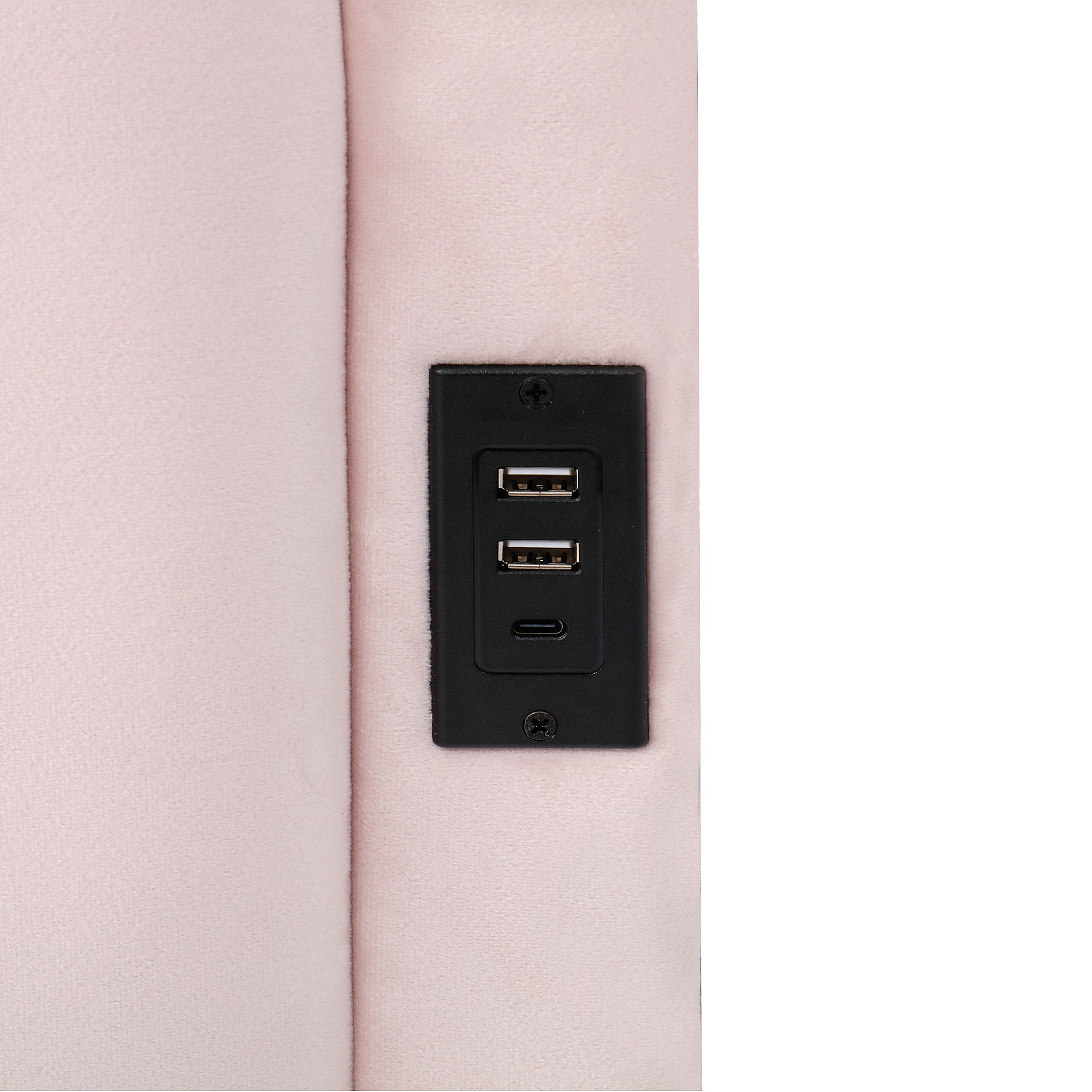 Kinderbed met opbergruimte 90x200 cm met USB-oplaadpoort en opbergvak, roze fluweel (zonder matras)