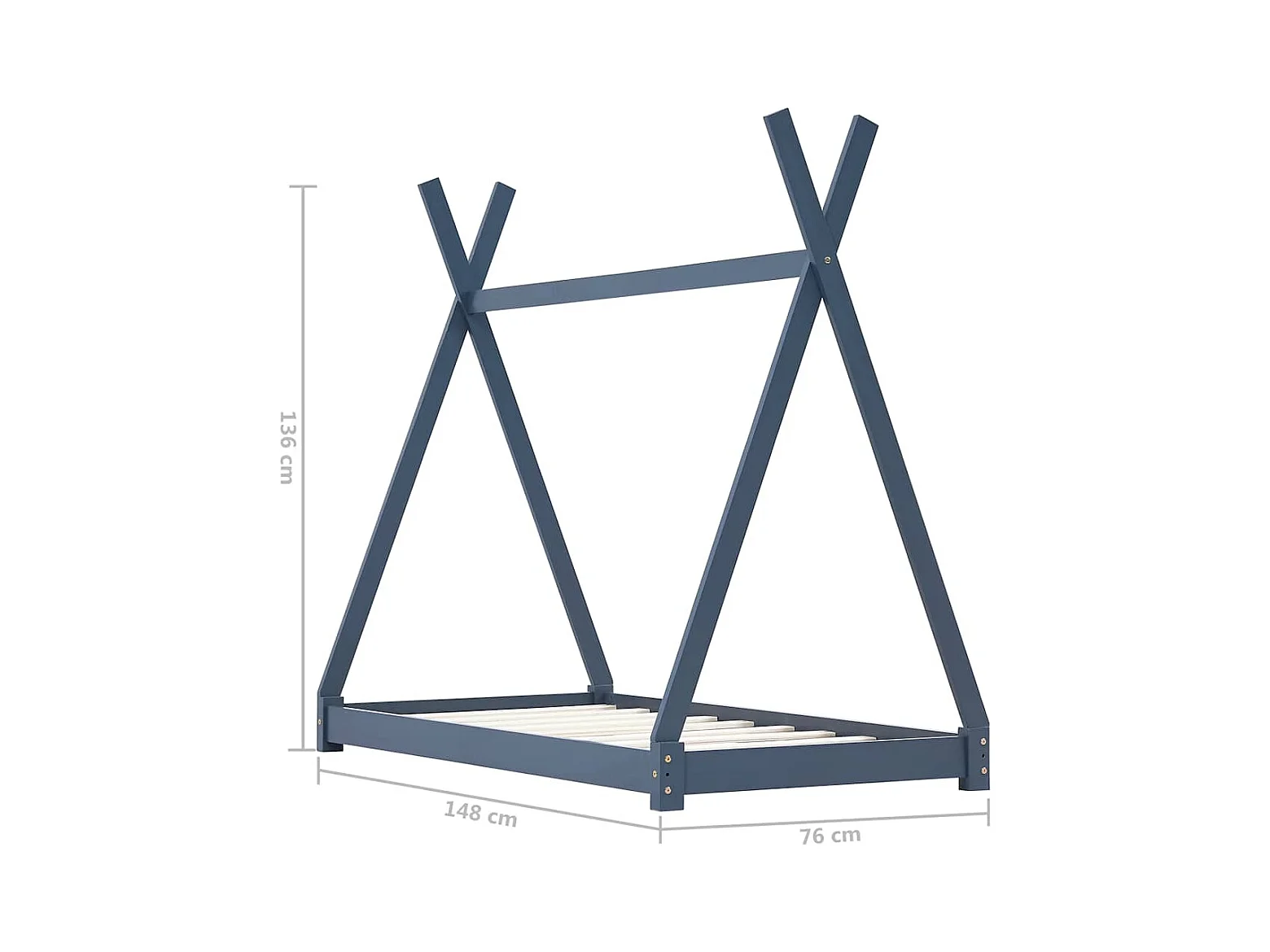 Kinderbedframe massief grenenhout grijs 70x140 cm