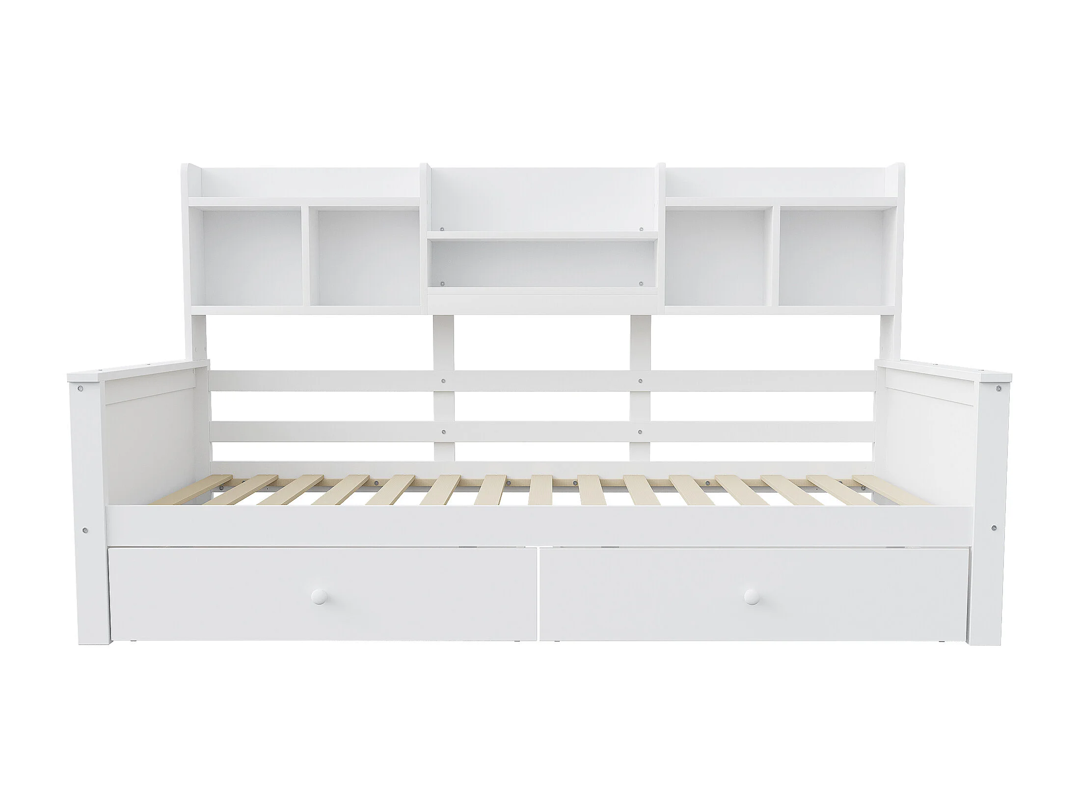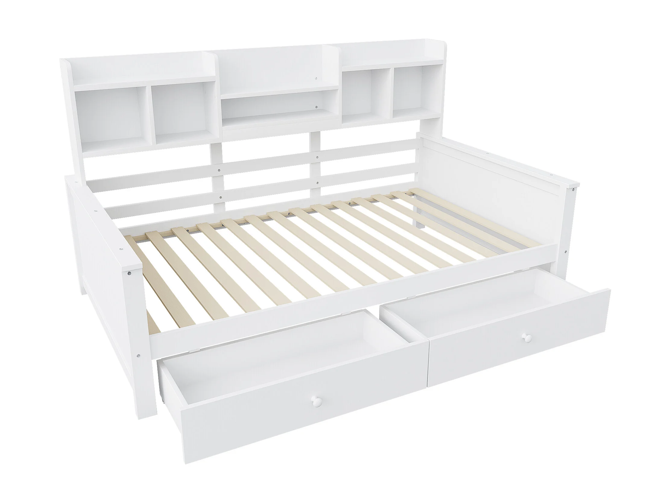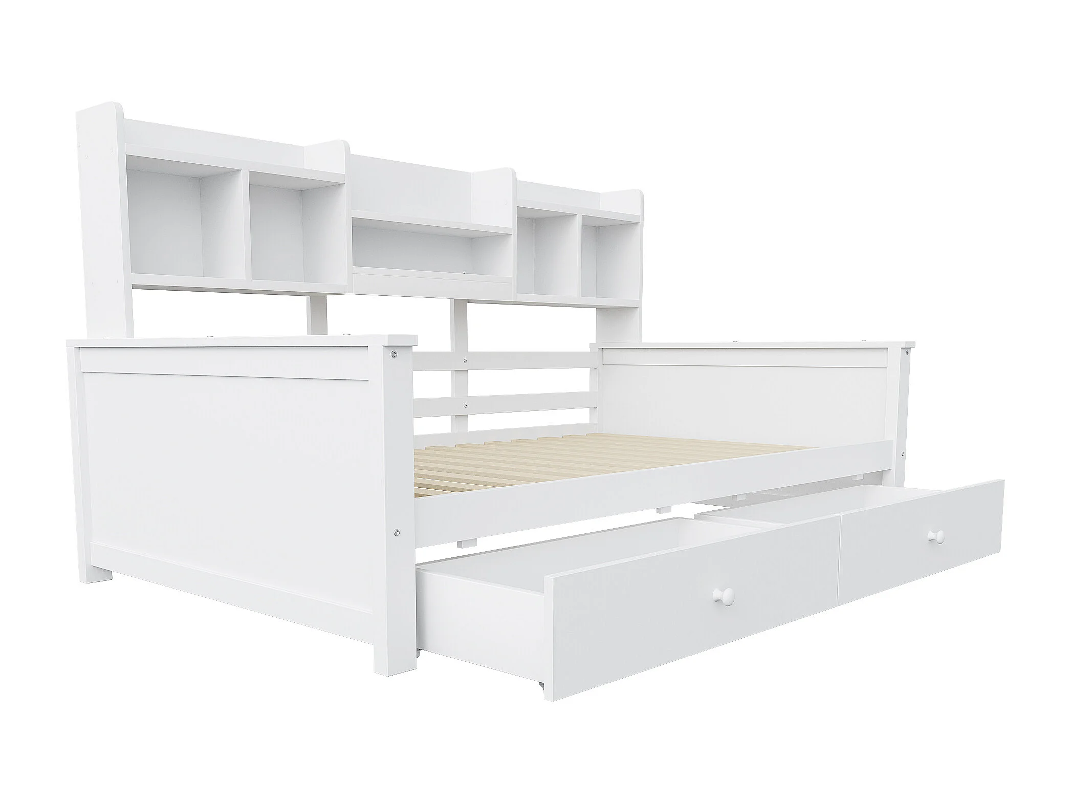 Kinderdagbed 90x200 cm met 2 lades en planken - Beige hout (matras niet inbegrepen)