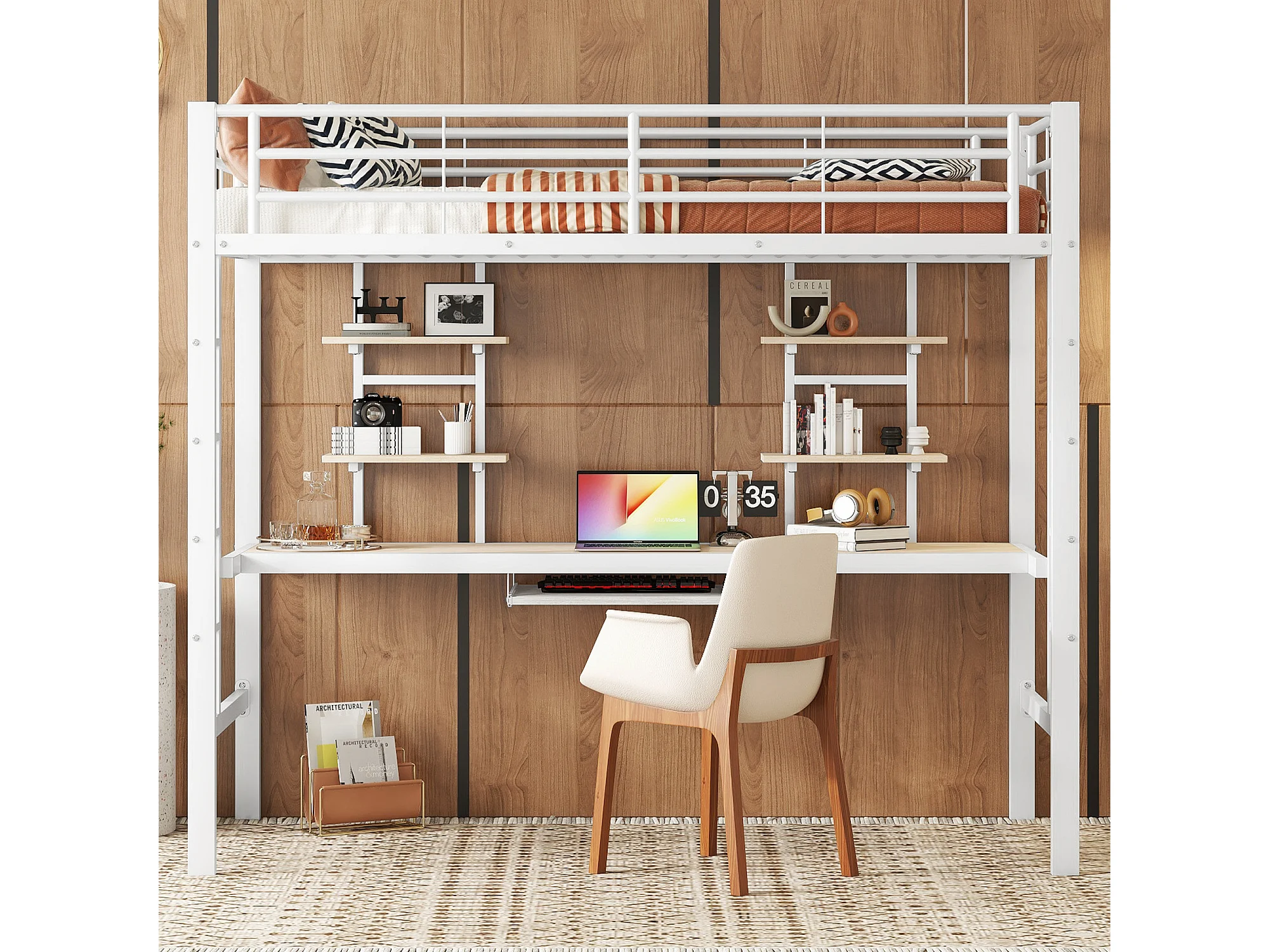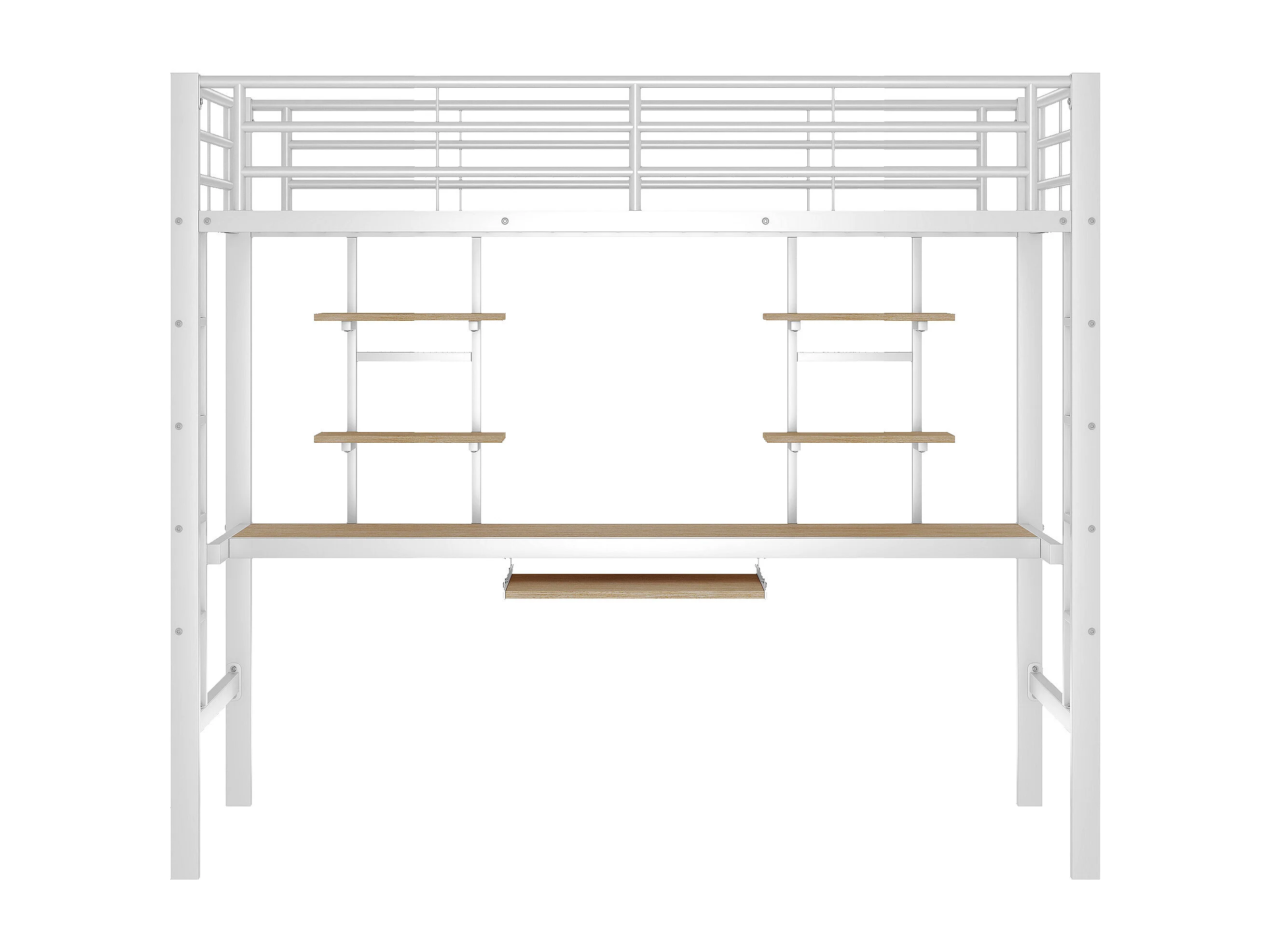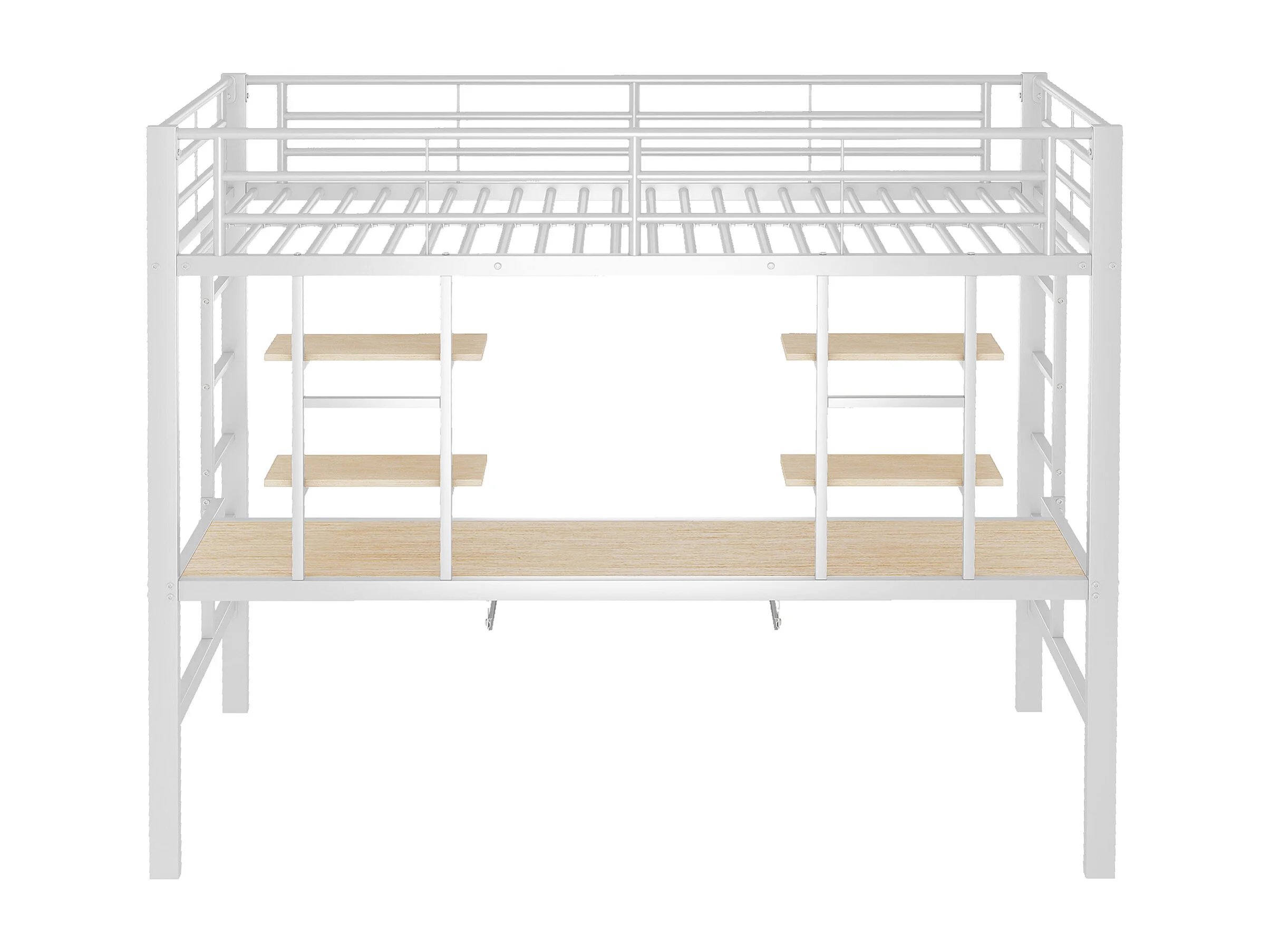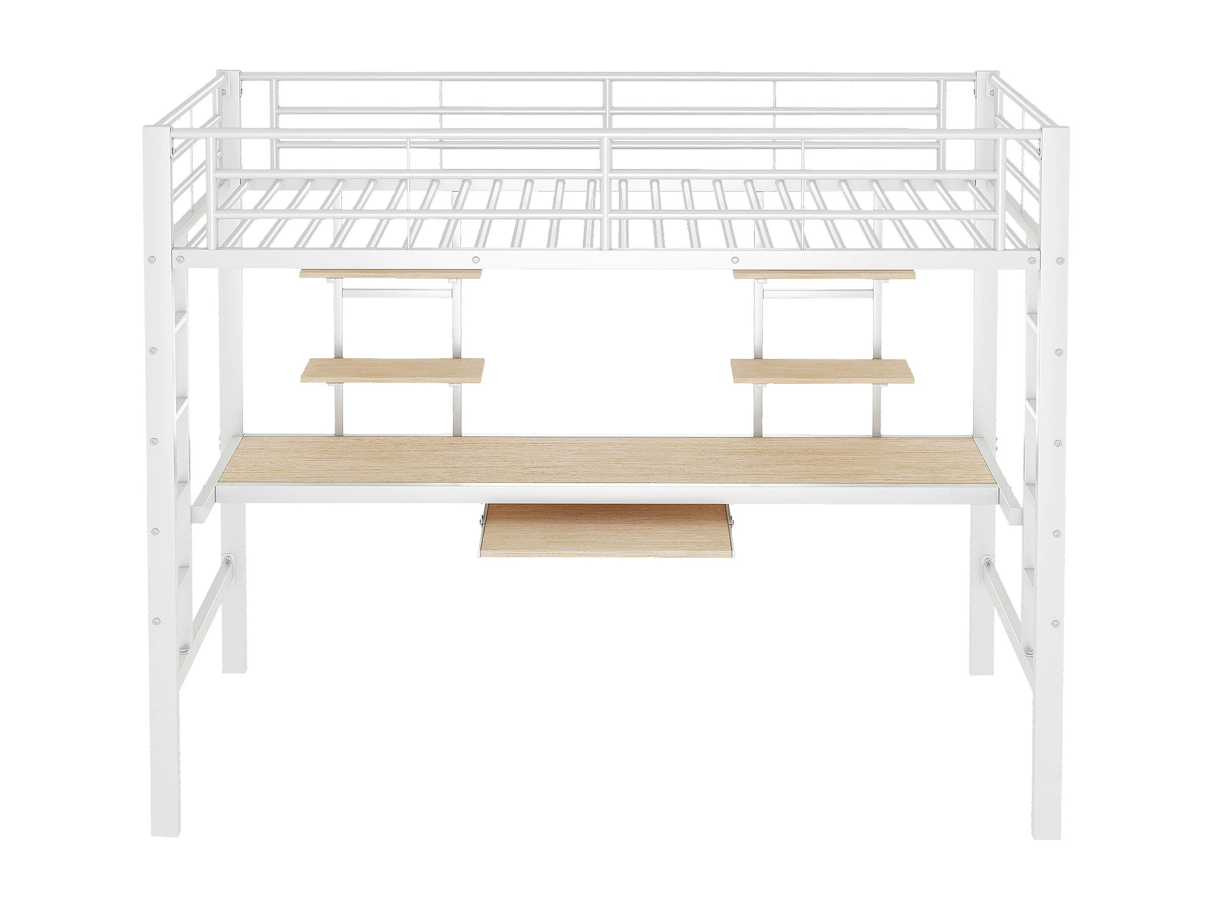 Kinderhoogslaper 90x200cm met lattenbodem - valbeveiliging - bureau en 2 legplanken - metaal - wit (zonder matras)