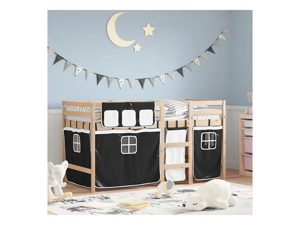 Kinderhoogslaper met gordijnen zonder matras 90x200cm
