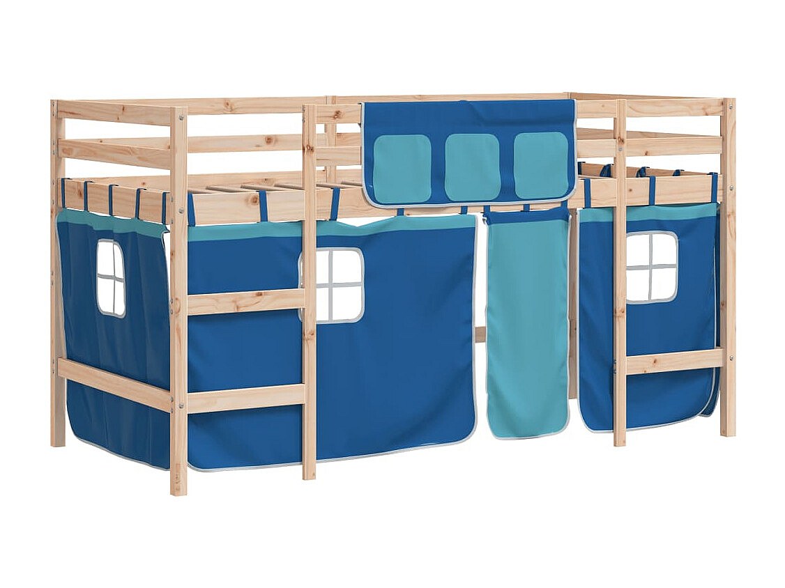 Kinderhoogslaper met gordijnen zonder matras blauw 90x190 cm