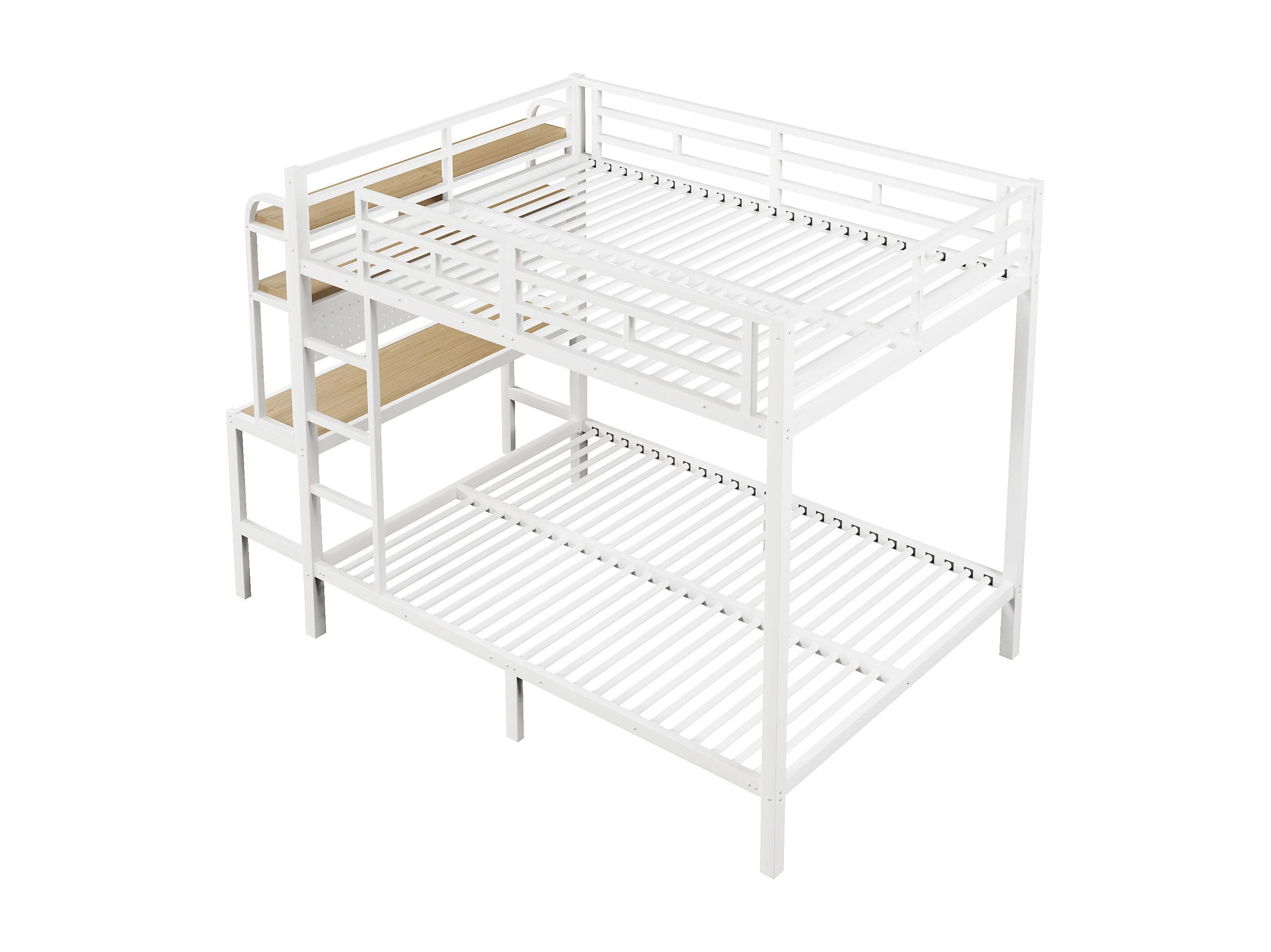 Kinderstapelbed 140 x 200 cm met bureau, ledverlichting en USB-poort - Metalen en MDF-bed - Wit