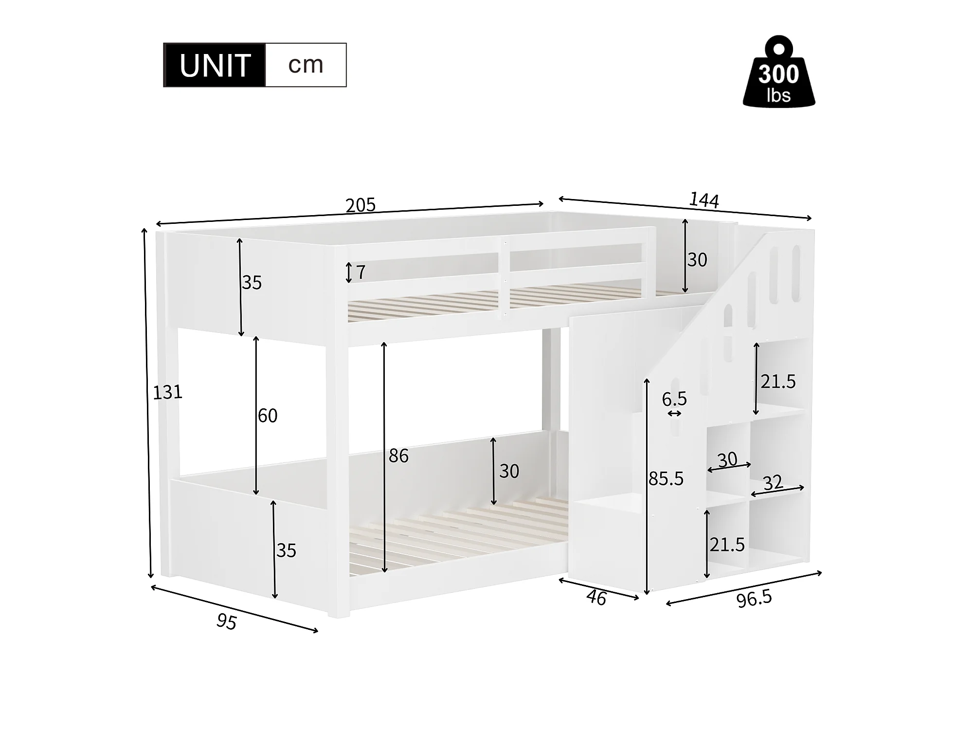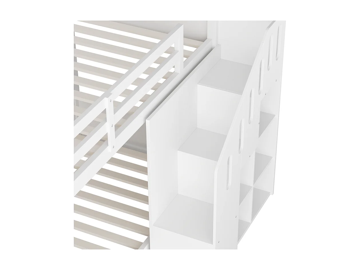 Kinderstapelbed - 2x90x200 cm - met trapkast en leuning - Wit (zonder matras)