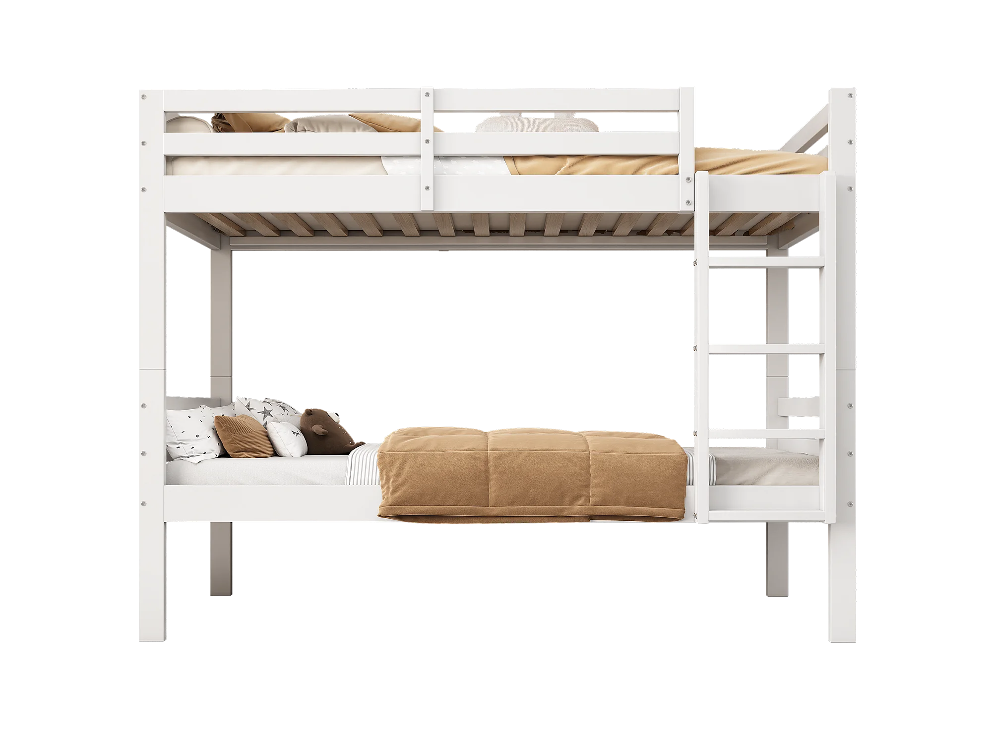 Kinderstapelbed, 3-traps schuine ladder, bescherming, 2 eenpersoonsbedden, grenen, wit, 90x200cm