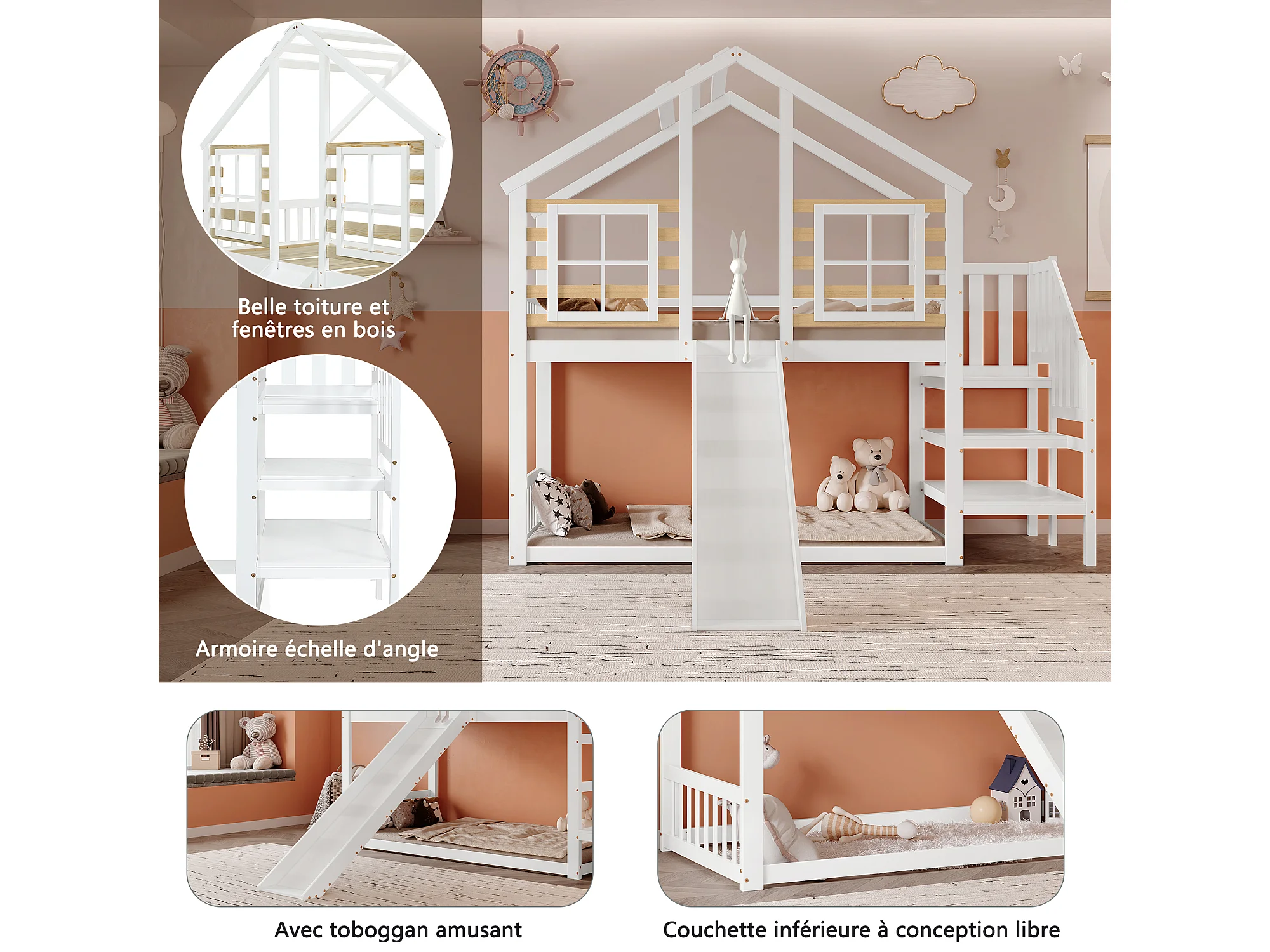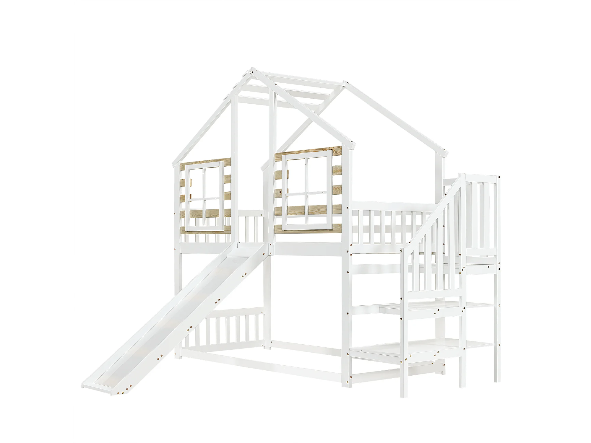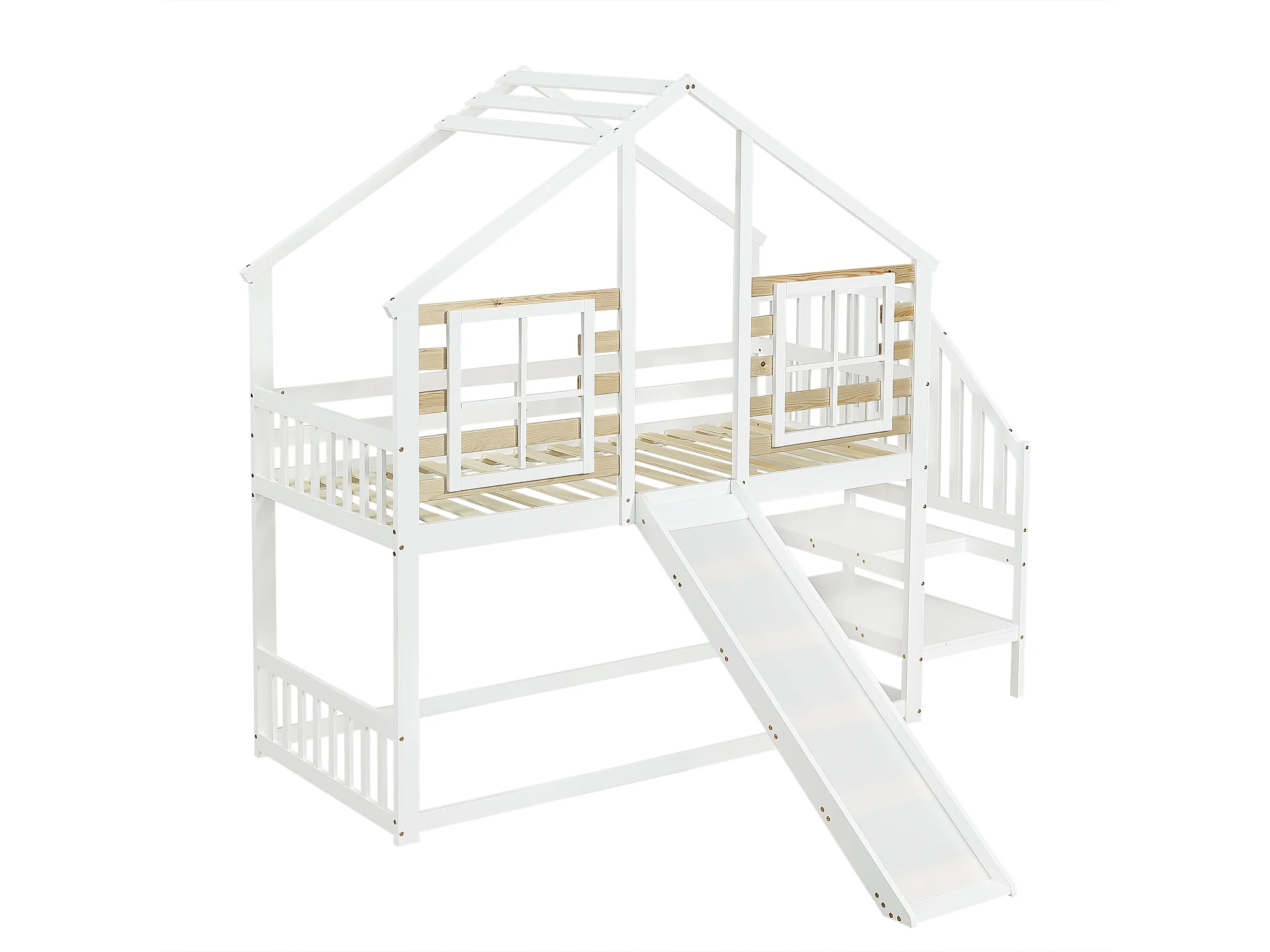 Kinderstapelbed - 90x200 - Hoogwaardig Massief Houten Bed Met Rechte Trap En Glijbaan - Wit