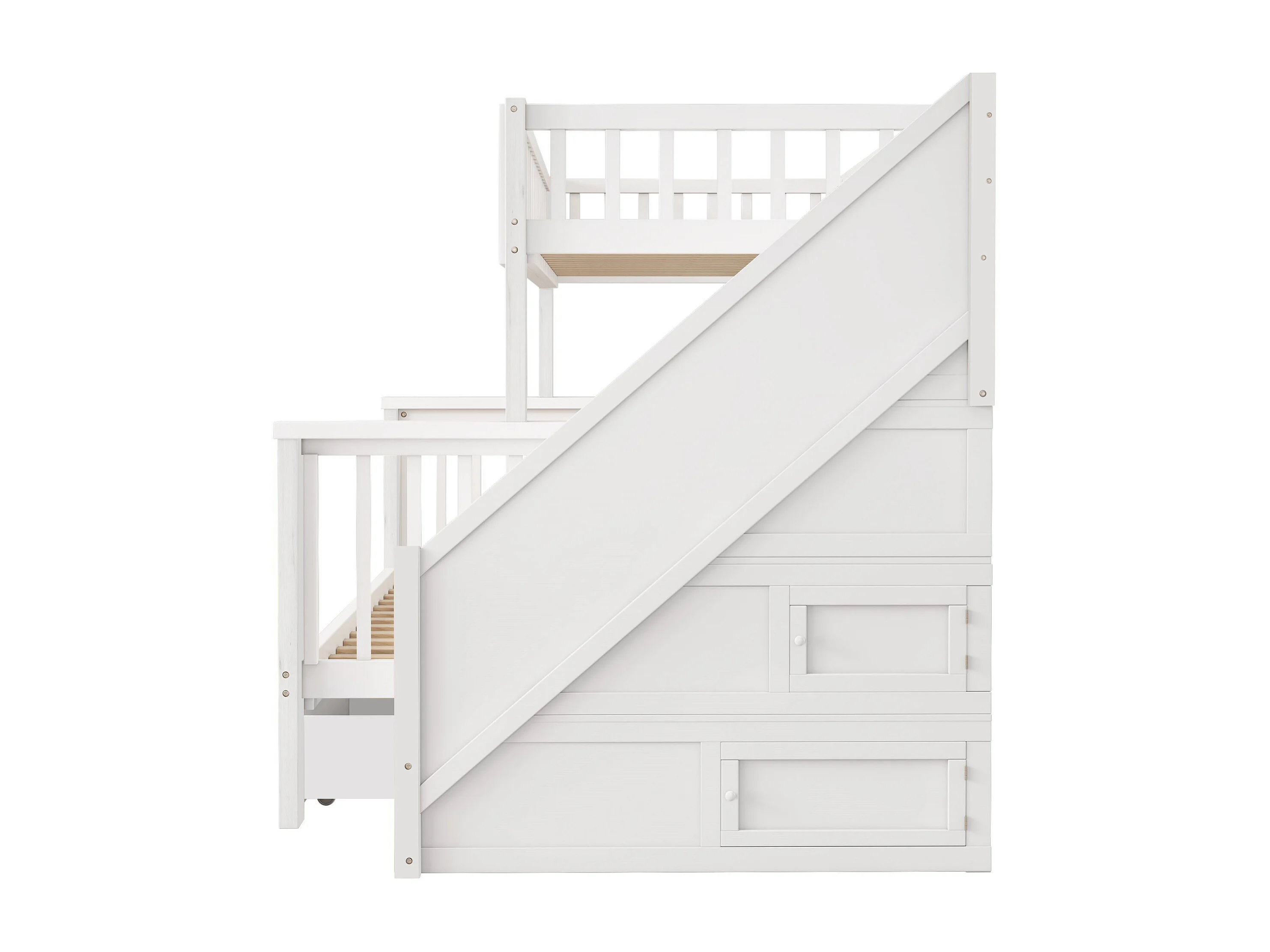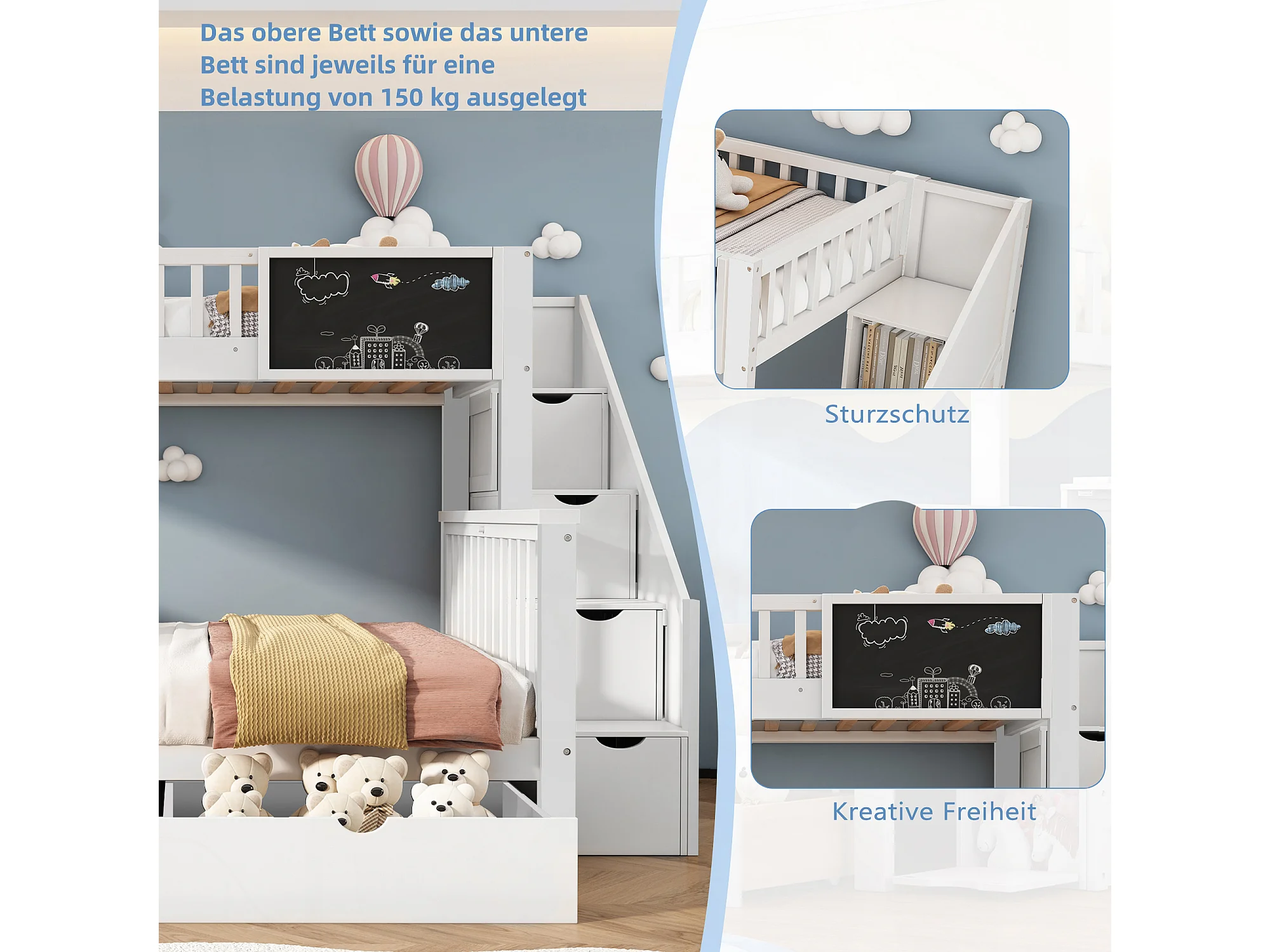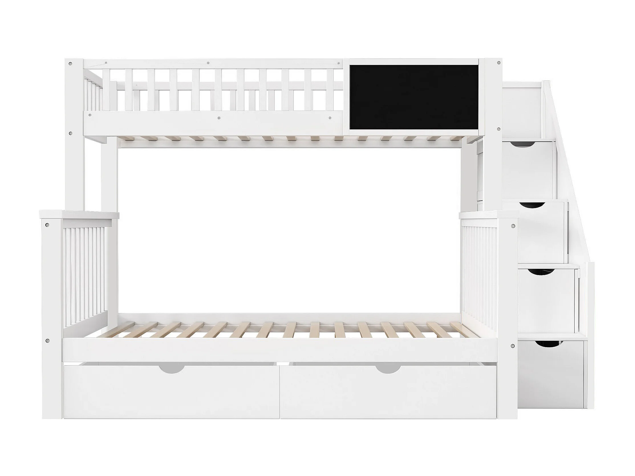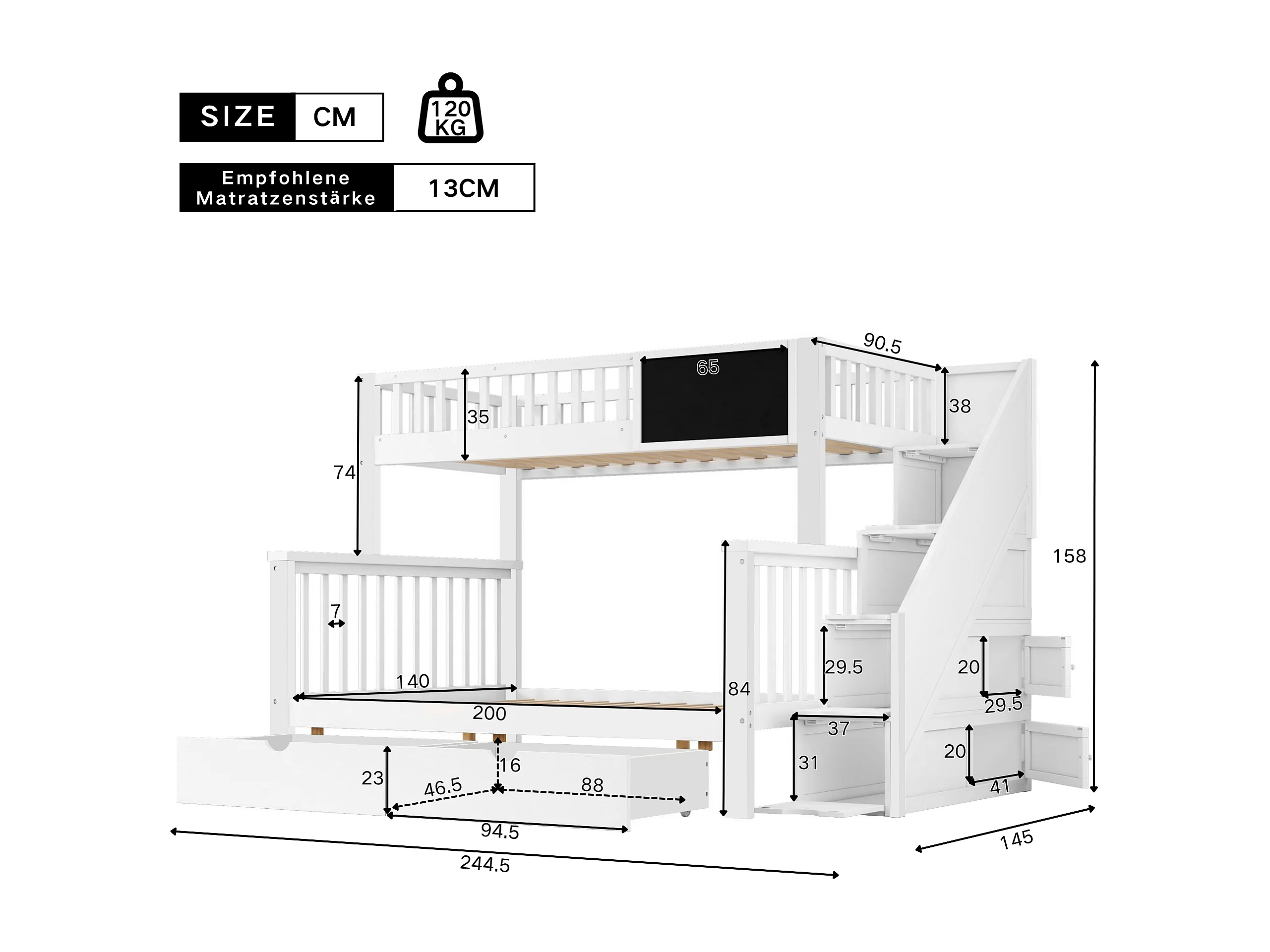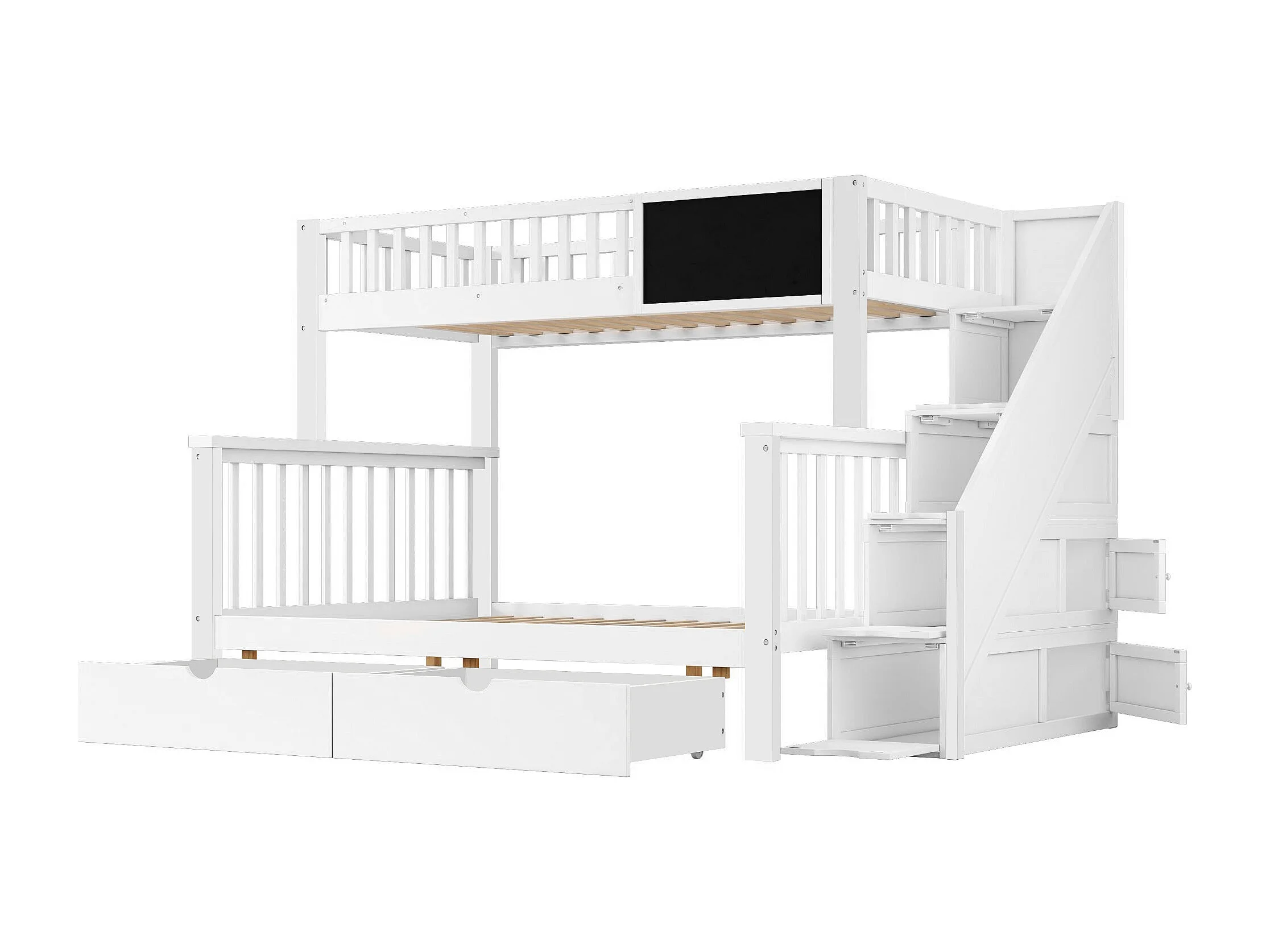 Kinderstapelbed 90x200cm en 140x200cm met krijtbord en 2 lades - Wit
