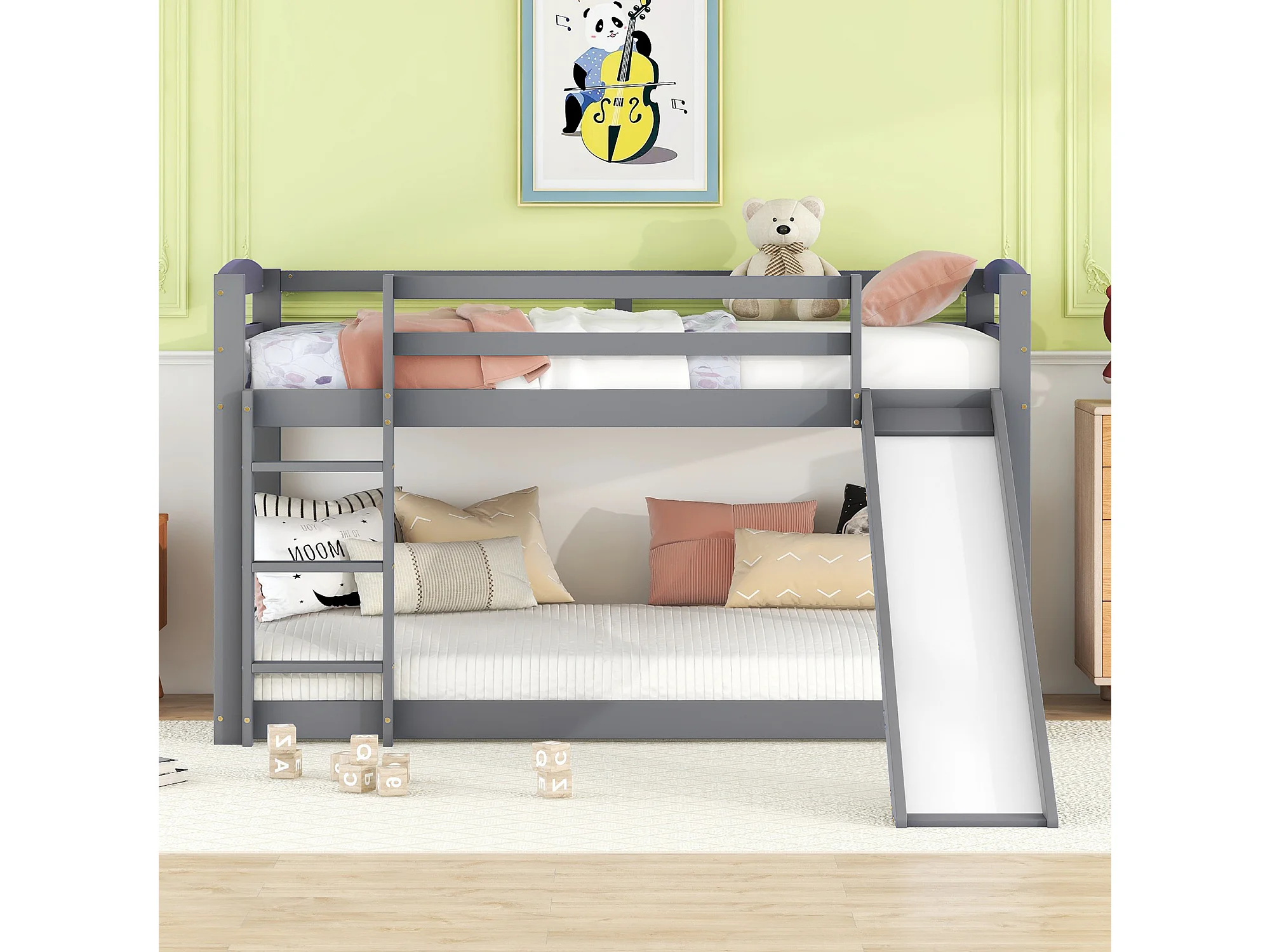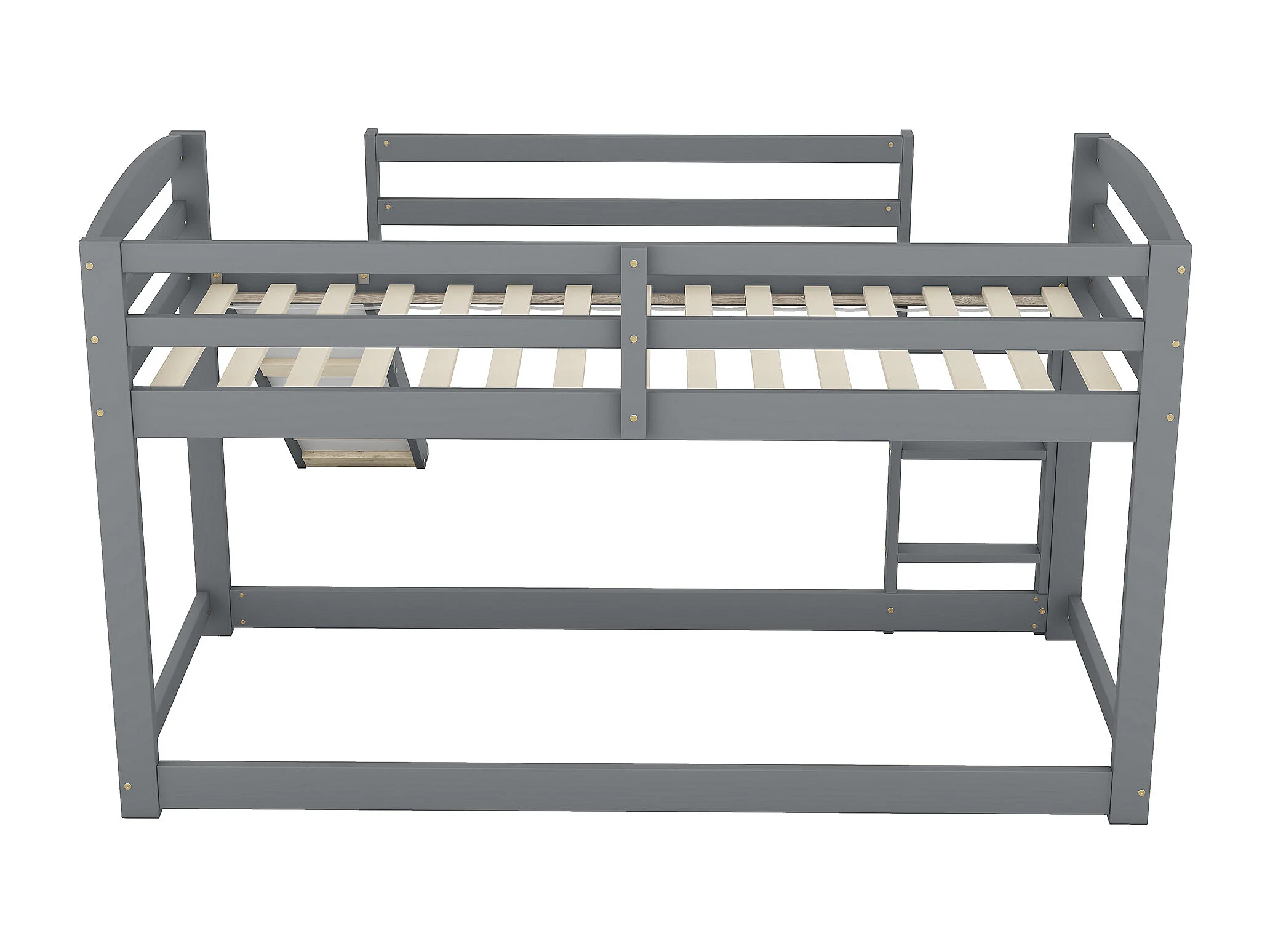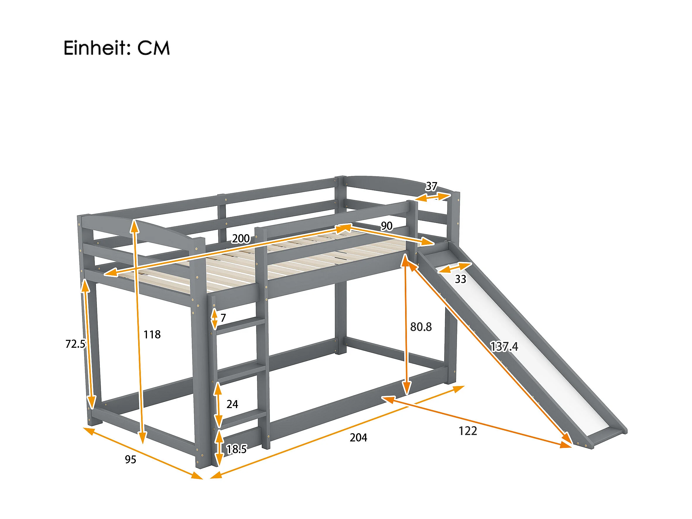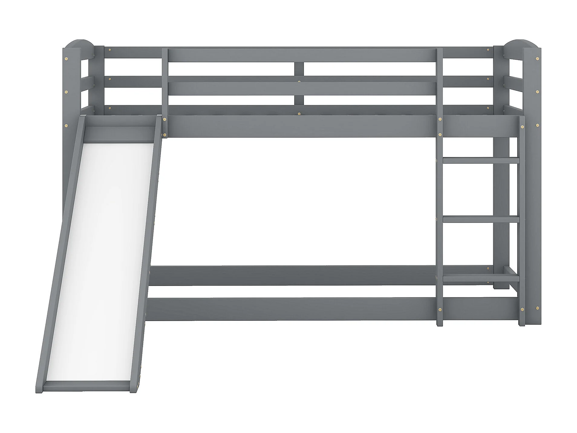 Kinderstapelbed 90x200cm met bodem - valbeveiliging en glijbaan - hout - grijs (zonder matras)