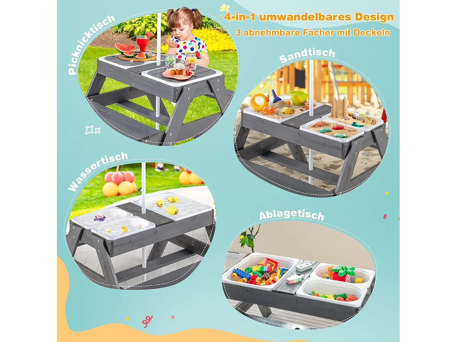 Kinderzitgroep voor buiten, 2-in-1 kinderzitset met parasol en 3 afneembare bakken voor zand en water, picknicktafel, speeltafel, tuinmeubelen voor tuin,ZB33043