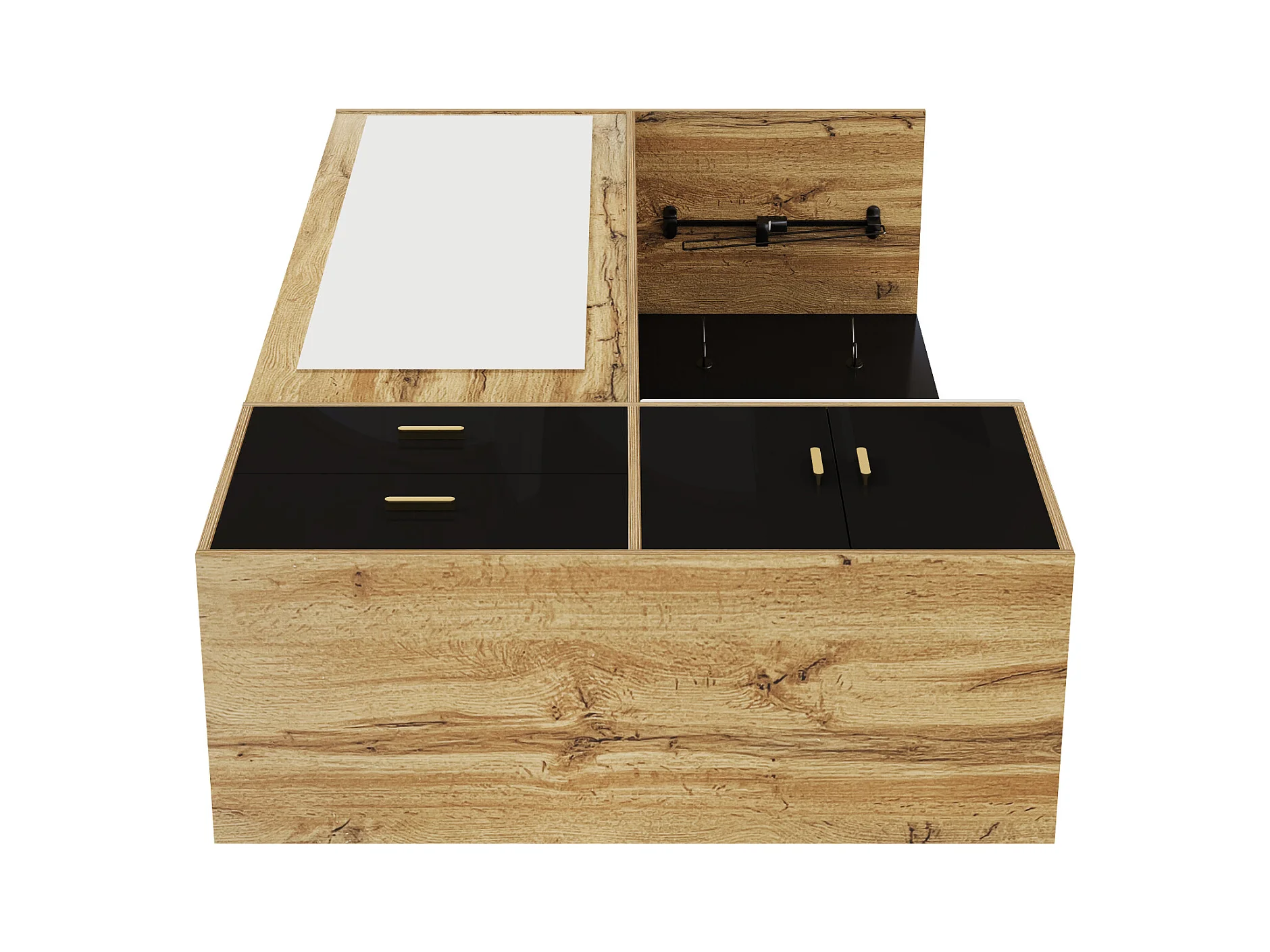 Kledingkast 100x38x108.1 cm - Met spiegel - Met schoenenkast - Met haken en uitschuifbare hangertjes - Zwart + Naturel