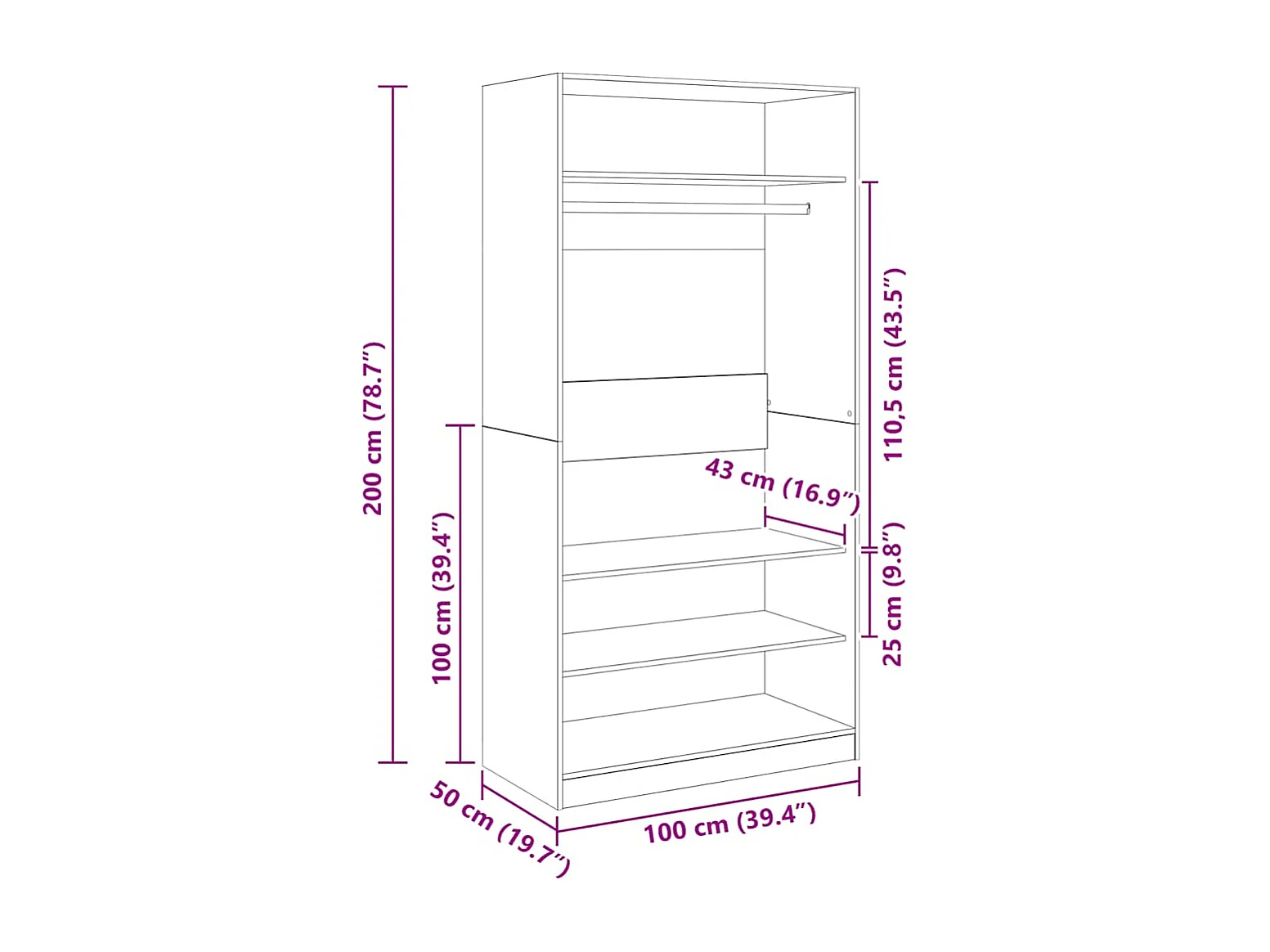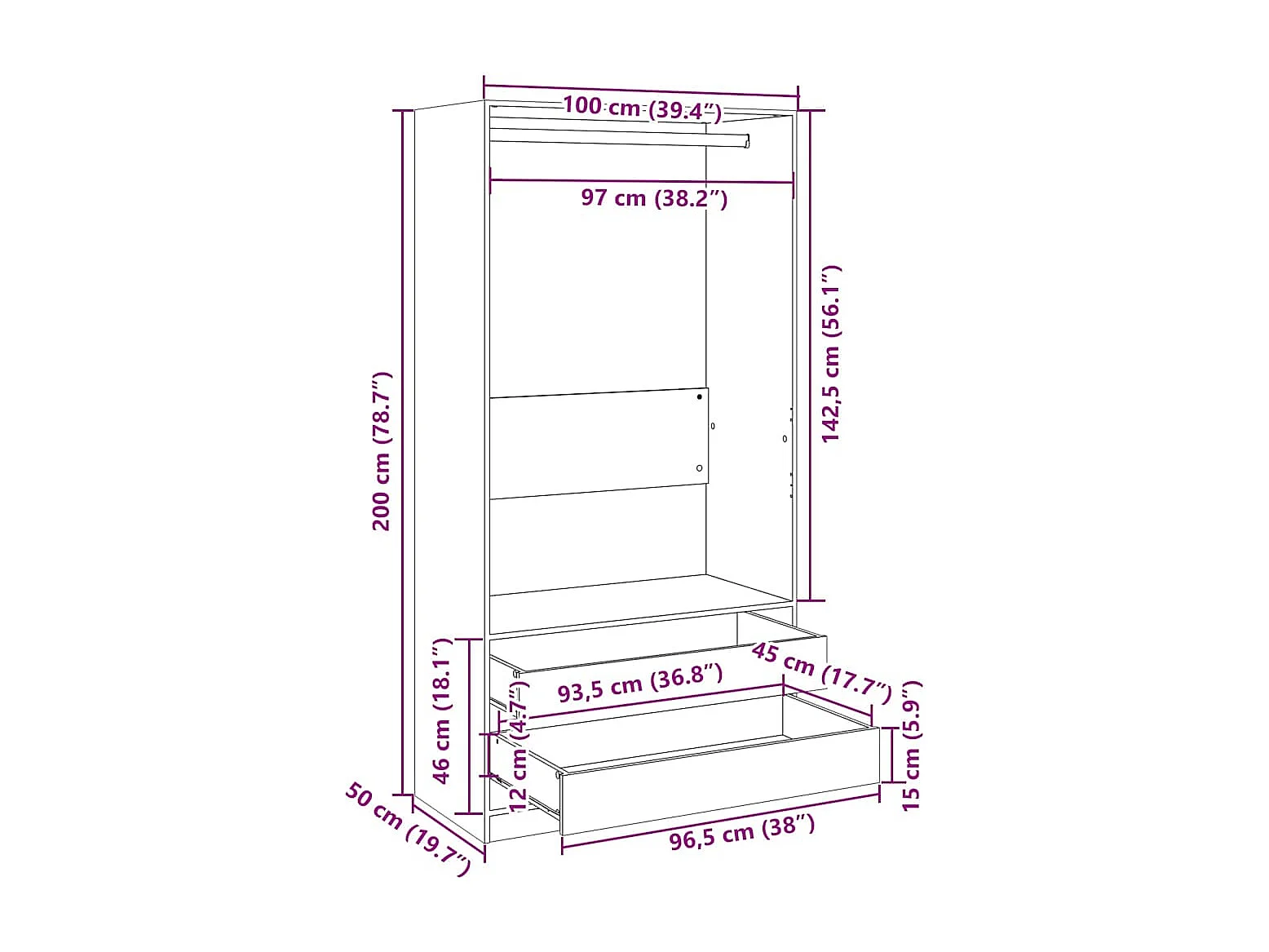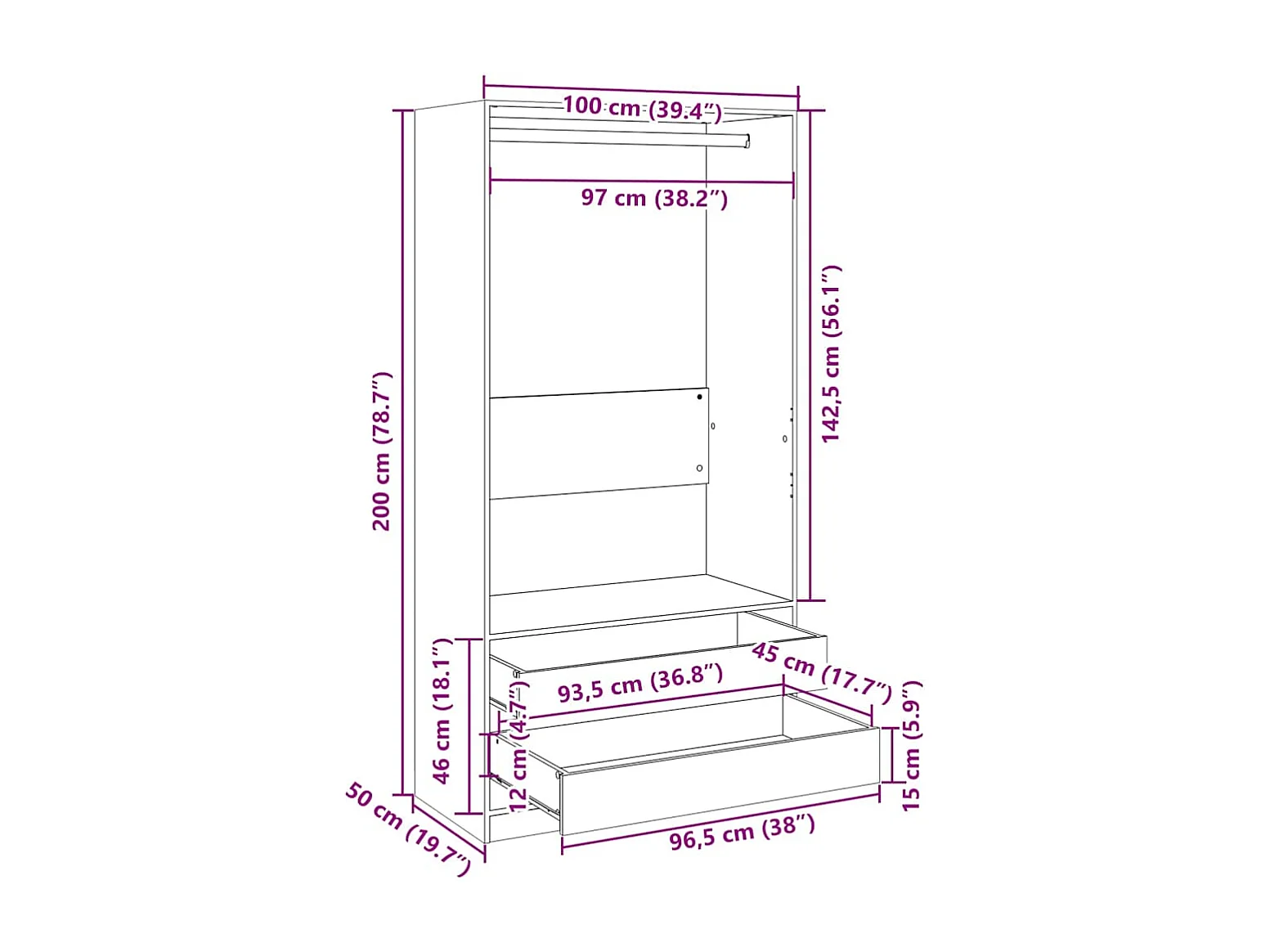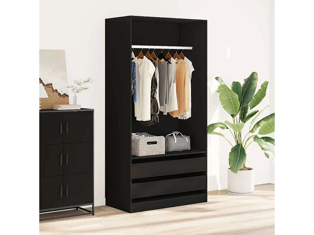 Kledingkast 100x50x200 cm bewerkt hout zwart