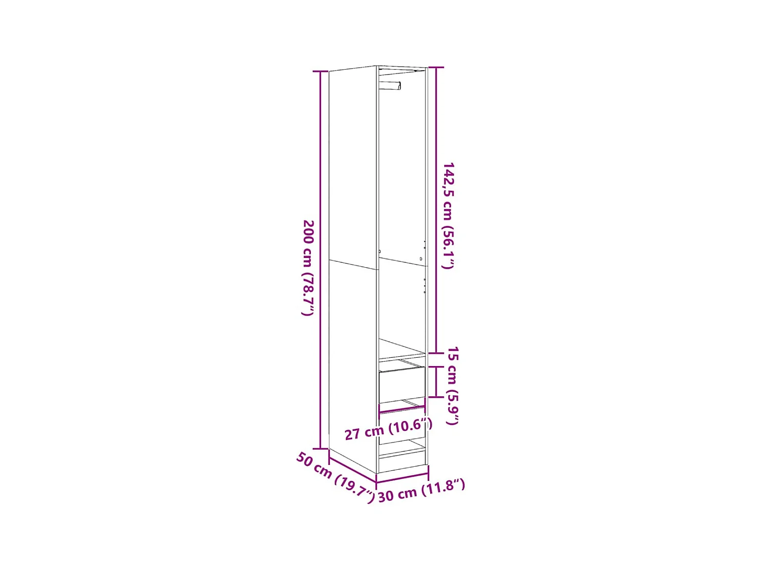 Kledingkast 30x50x200 cm bewerkt hout oud hout