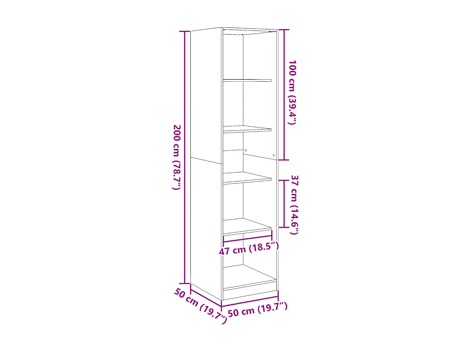 Kledingkast 50x50x200 cm bewerkt hout bruin eikenkleurig