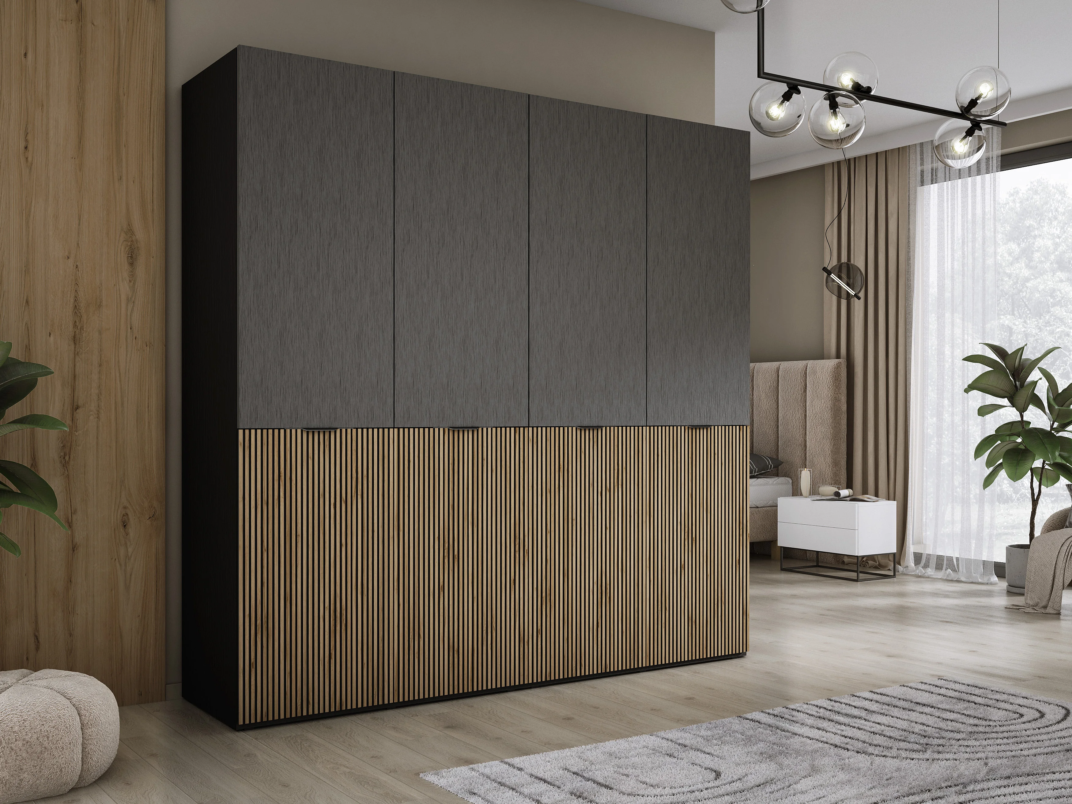 Kledingkast: Grafietzwart / Wotan Eiken, 200 x 200 x 51 cm