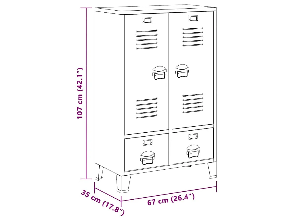 Kledingkast industrieel 67x35x107 cm staal wit