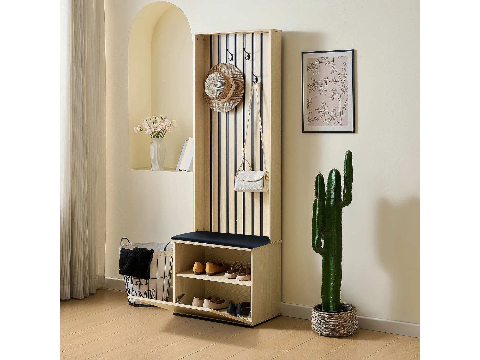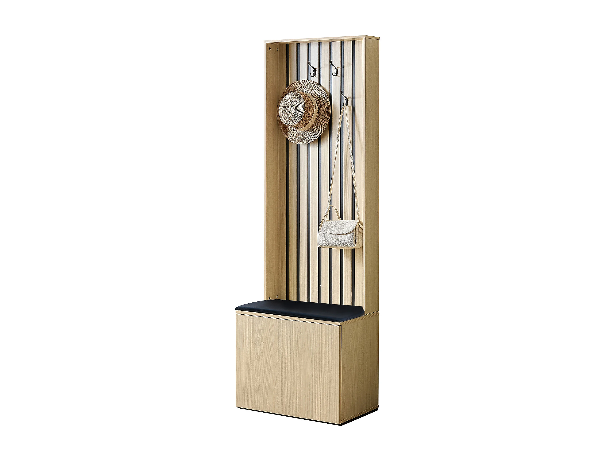 Garderobeset voor de entree 61x35x179,5 cm - met bank en schoenenmeubel - 1 valluikdeur - met 4 haken - Natuur