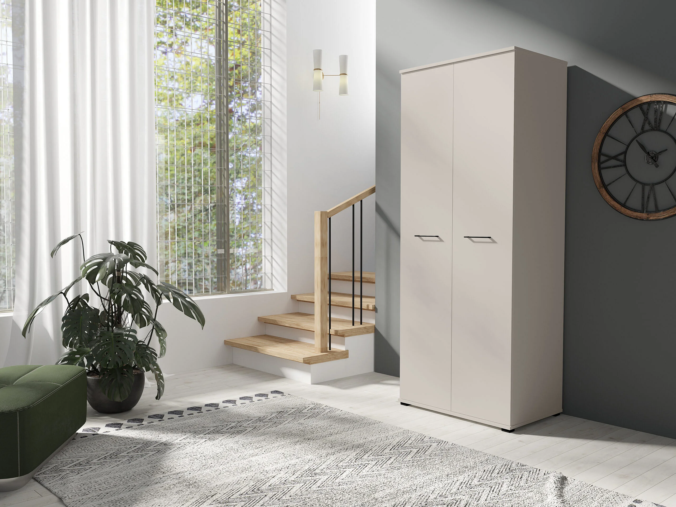 Kledingkast met twee deuren 80cm x 200cm BETON | Planken + Kleerhangerstang