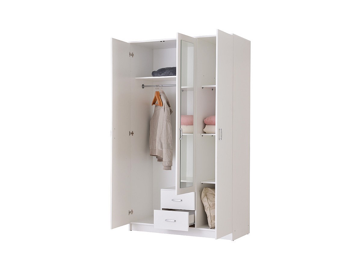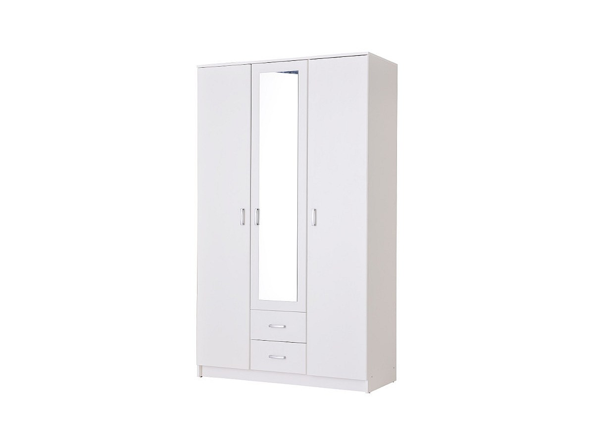 Kledingkast OLESSIA - 3 deuren & 2 laden - Met spiegel - L20 cm - Wit