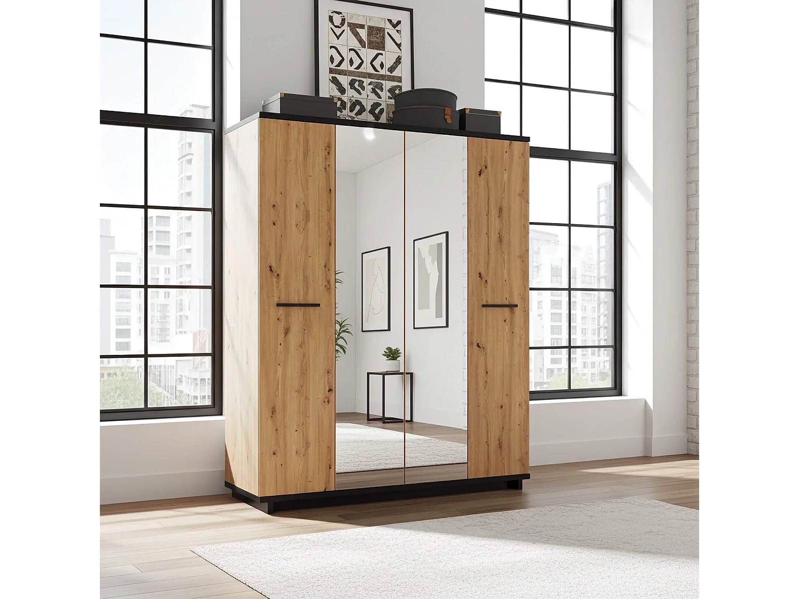 Kledingkast Zonda SZ4D - 180 cm - Artisan Eiken / Antraciet - Spiegel