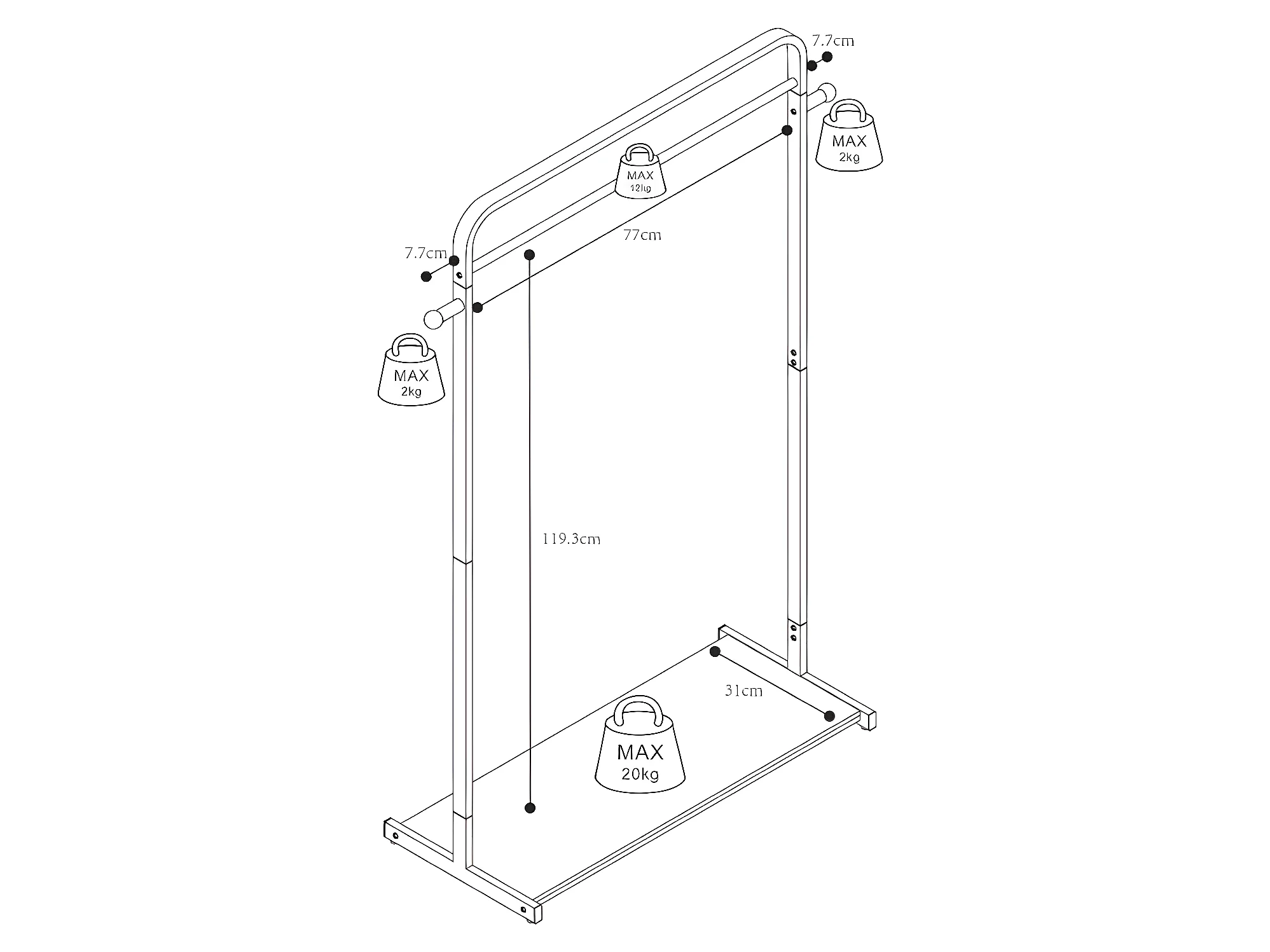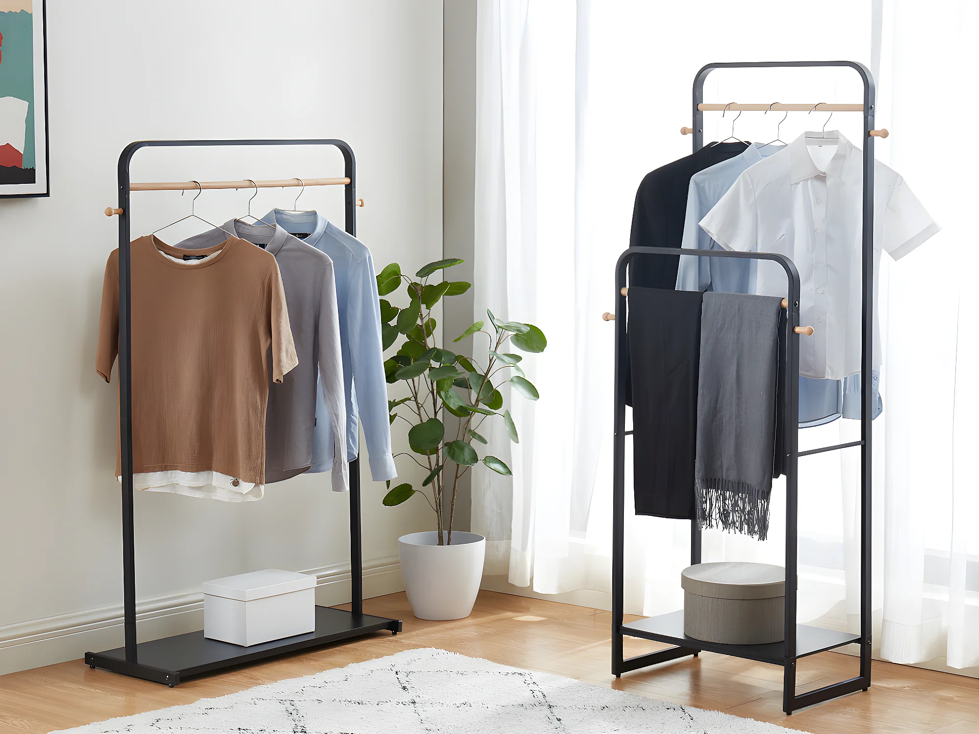 Kledingrek SELIN - L90 cm - Zwart metaal en beukenhout