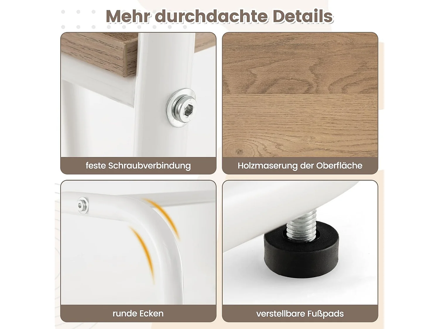 3-in-1 bijzettafel van massief hout, kapstok met schoenenbank en 3 haken, vrijstaande kledingstandaard, multifunctioneel voor slaapkamer, woonkamer(natuur)VH33674