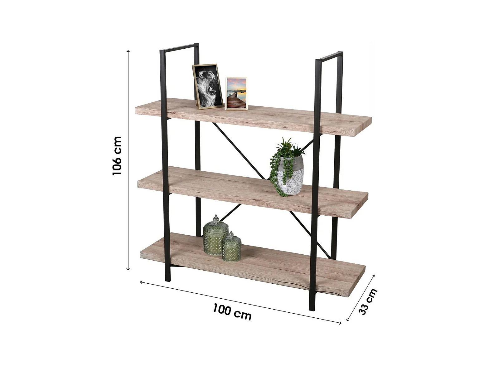 Kleine open boekenkast met 3 houten planken uit de DARYL collectie - Afmetingen 100x33x106 cm