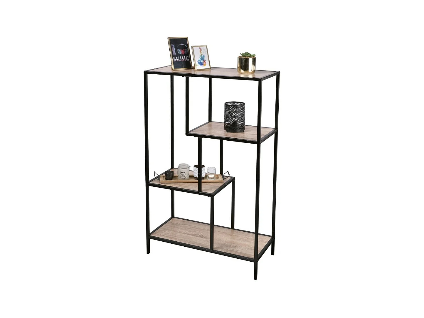Houten boekenkast met metalen frame uit de JAYCE collectie - Afmetingen 100x35x156 cm