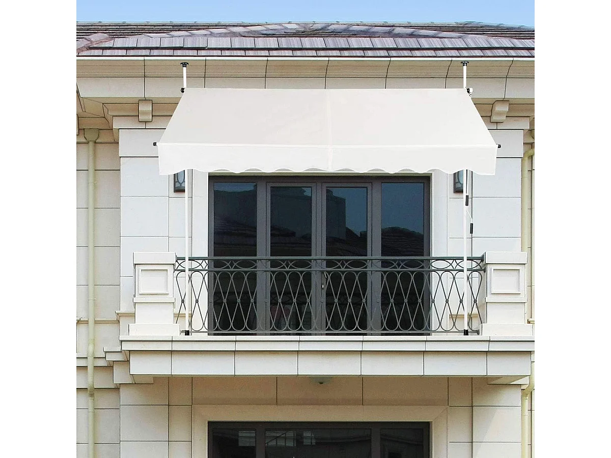 Klemluifel, 200 cm breed, balkonluifel zonder boren, uv-bestendig, in hoogte verstelbaar,luifel met handslinger, zonneluifel,beigeZB33759