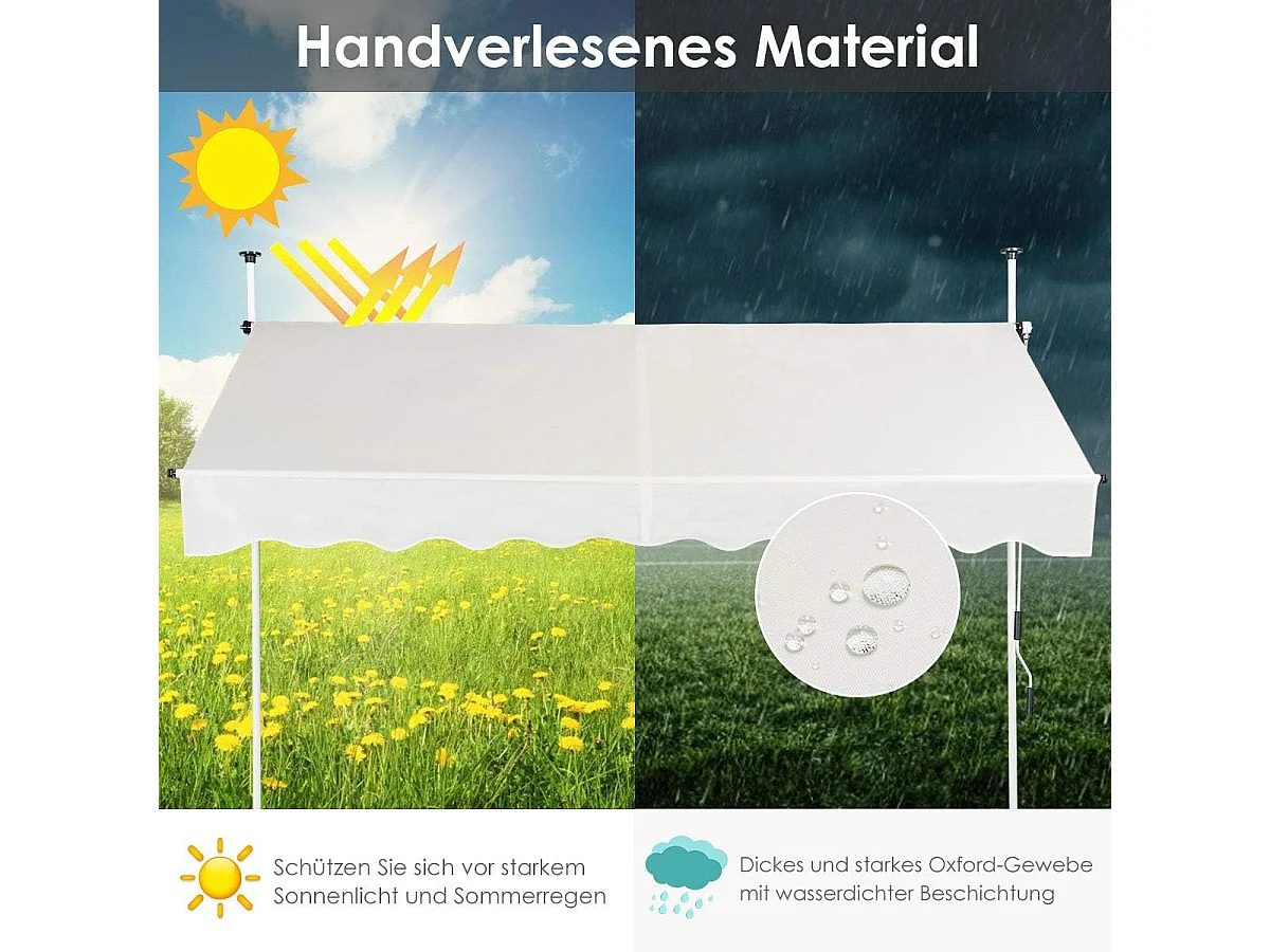 Handmatig Intrekbaar Terrasscherm, SucceBuy 305x244 CM Intrekbaar Terrasscherm, Zonnescherm met Zwengel